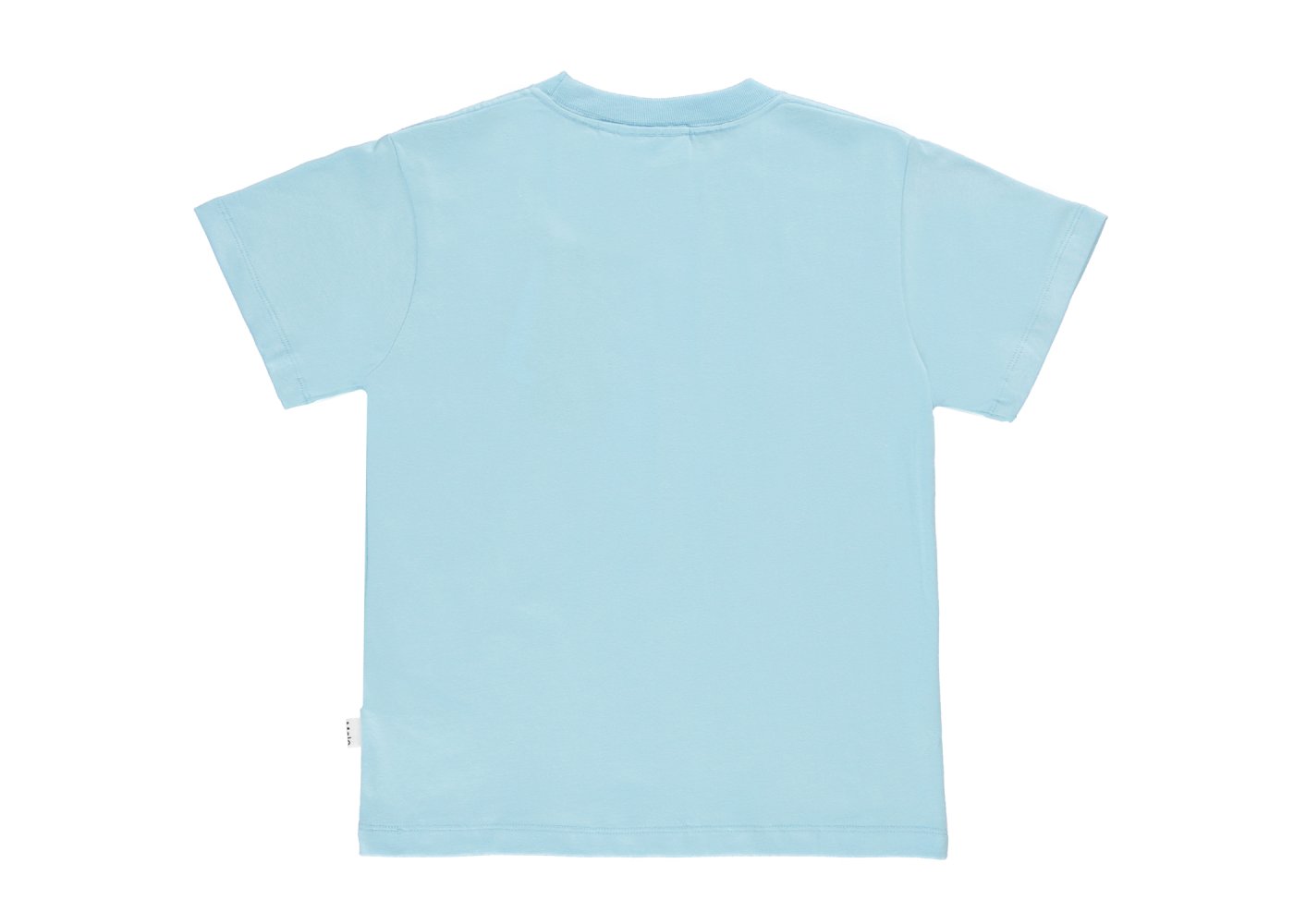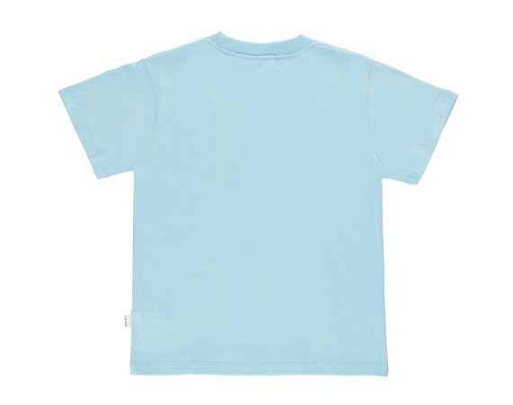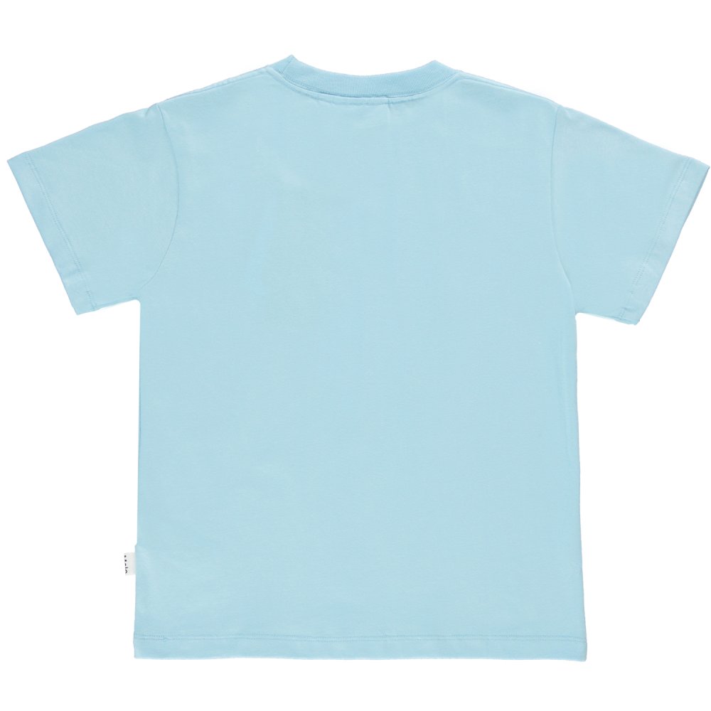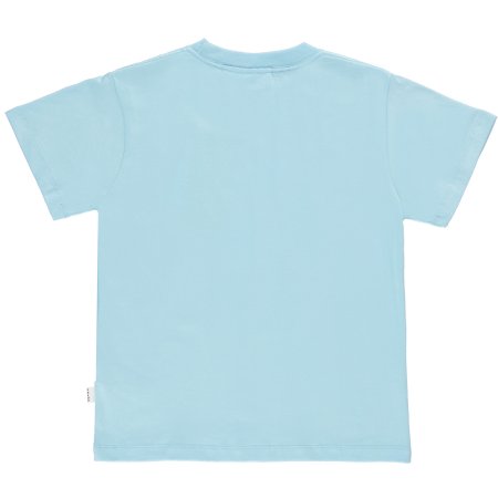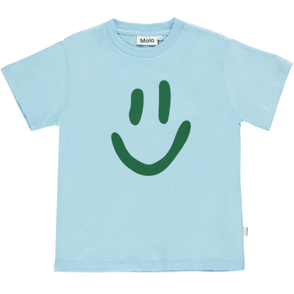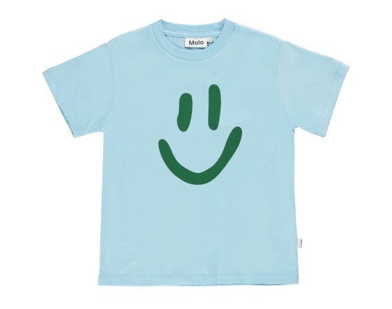 Sød kortærmet blå t-shirt med sjov smiley foran.