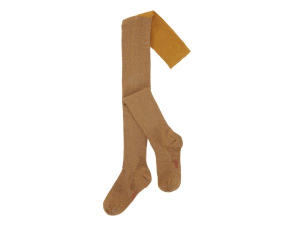 Fine og bredt anvendelige gyldne strømpebukser med glimmer og elastisk talje.