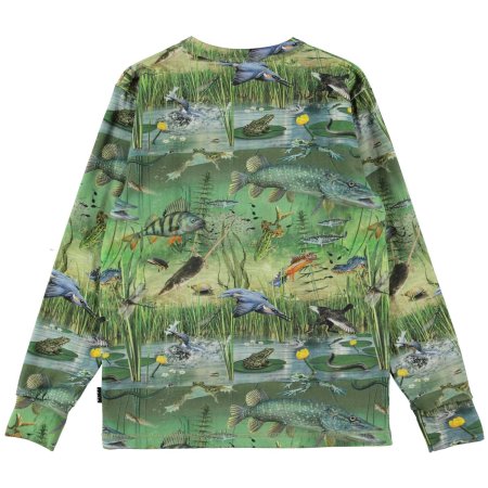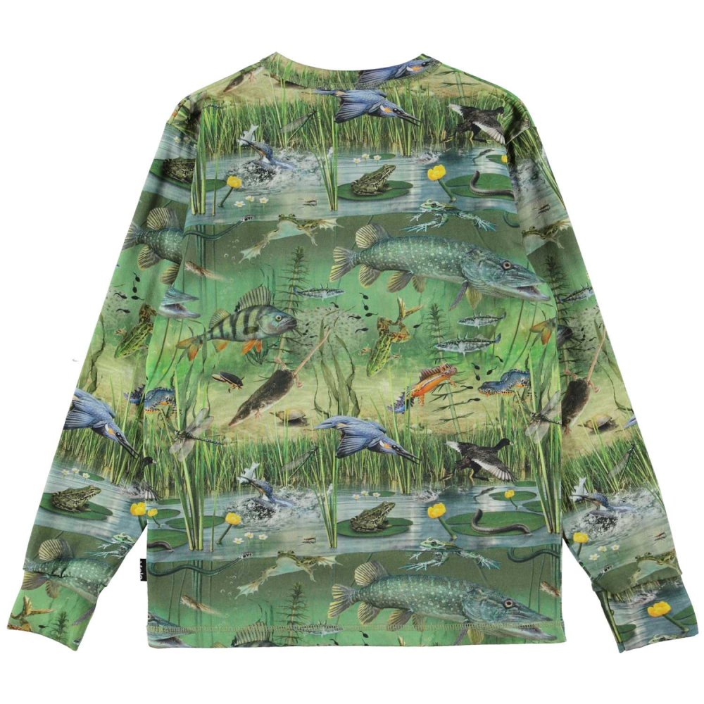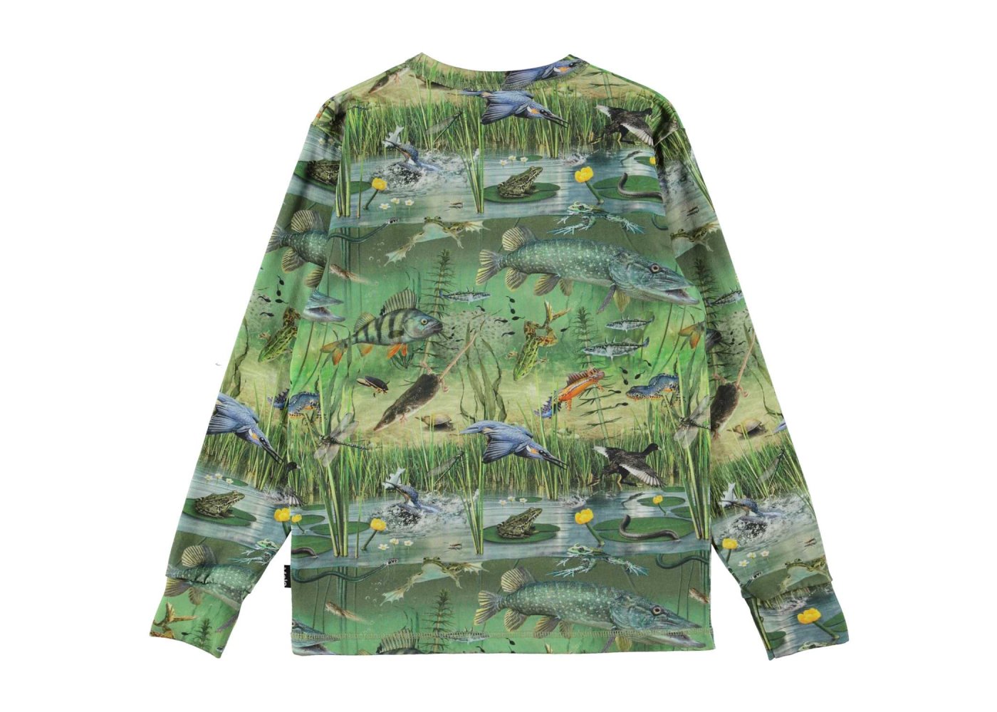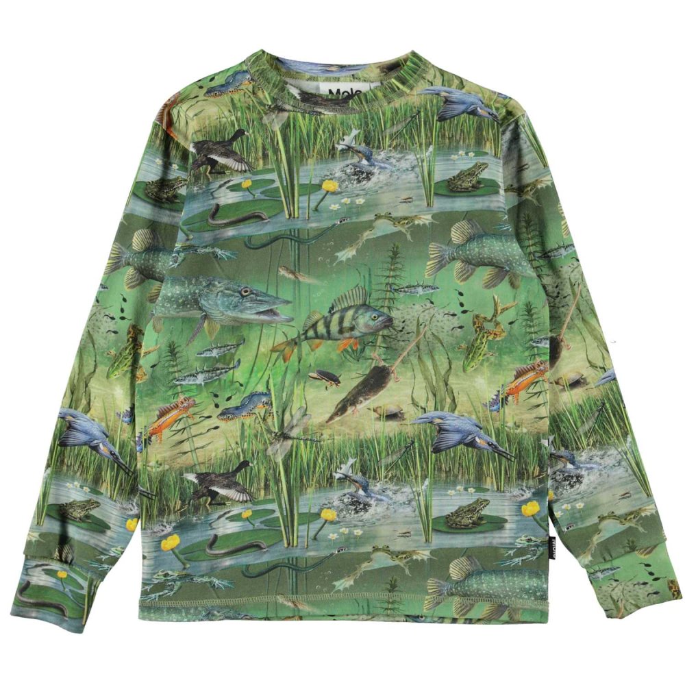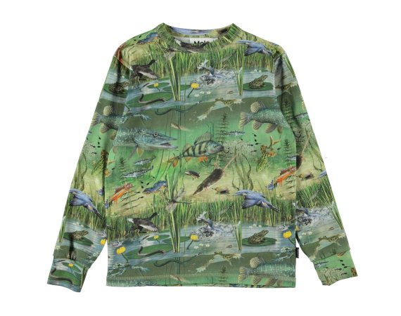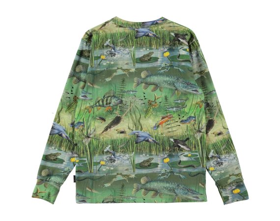 Smart langærmet t-shirt med flotte motiver af fugle, fisk og padder i naturen.