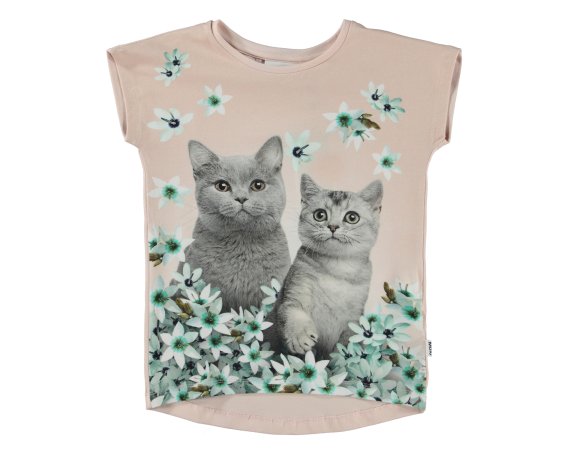 Yndig t-shirt med fint print foran af søde katte blandt blomster.