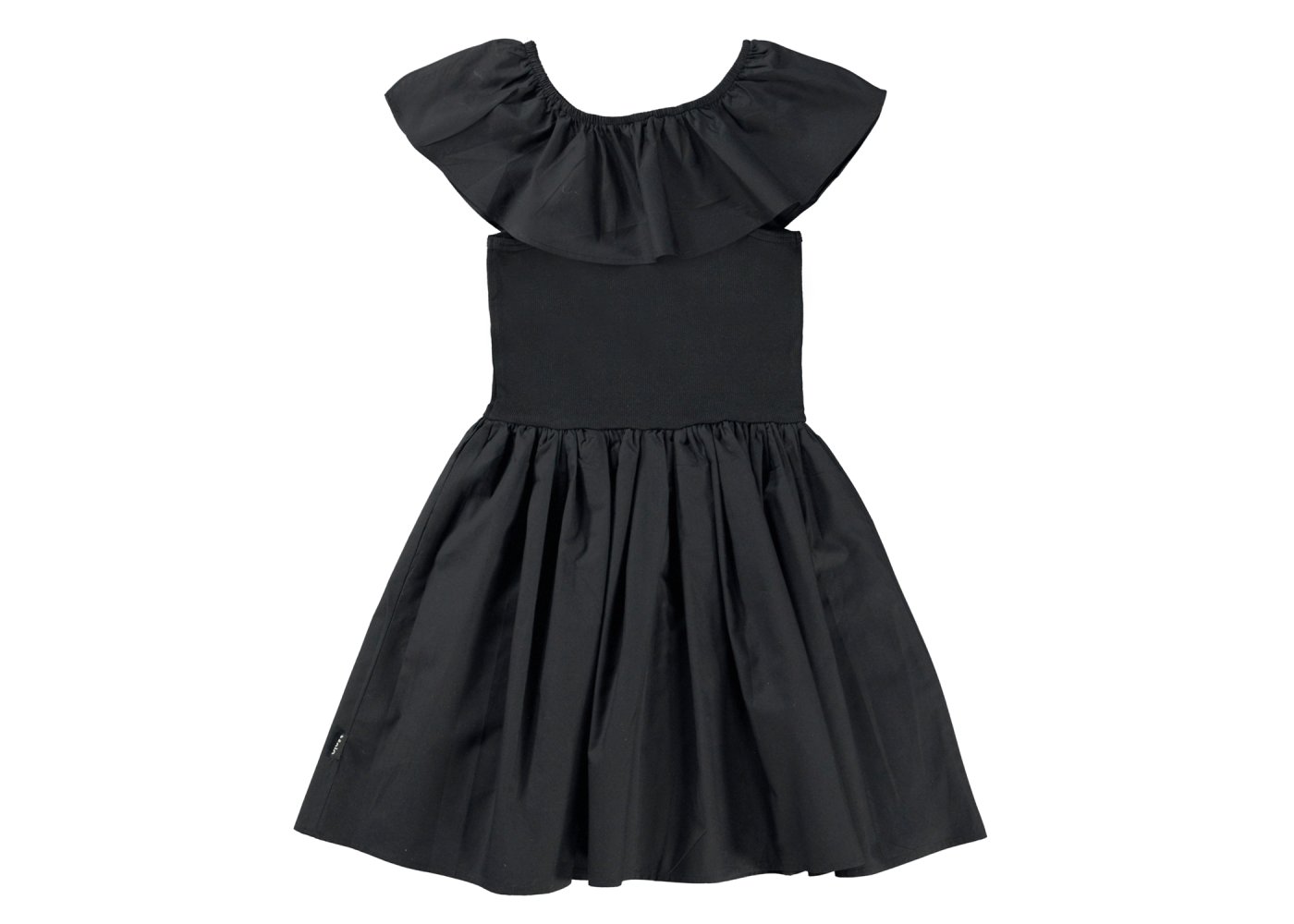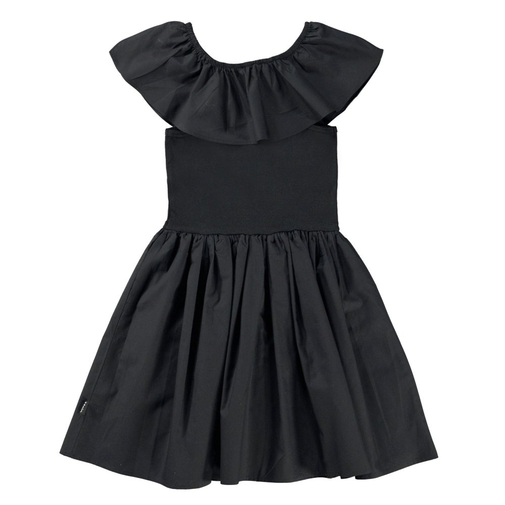 Skøn kjole med en flot bred flæse på skulder og bryst.