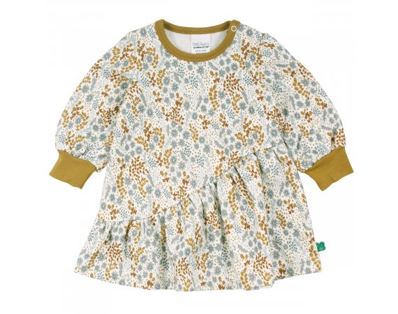 Kjolen er fremstillet i en lækker bomuld med børstet inderside, som gør at den er super lækker og blød at have på. Kjolen lukkes i halsåbning med tryklåse.