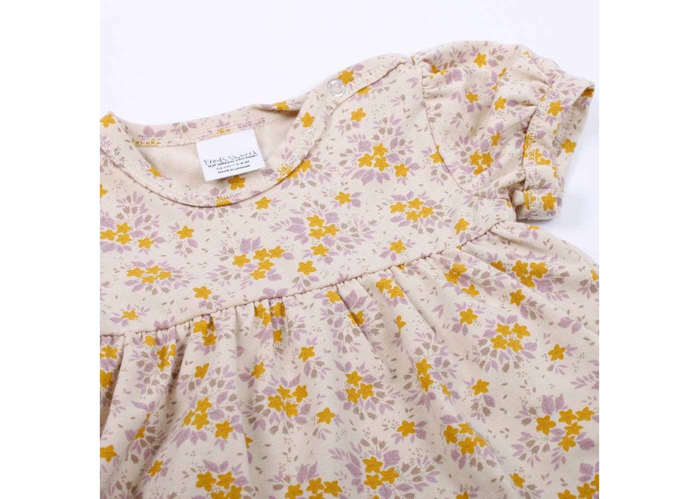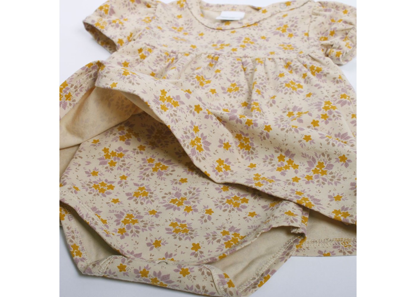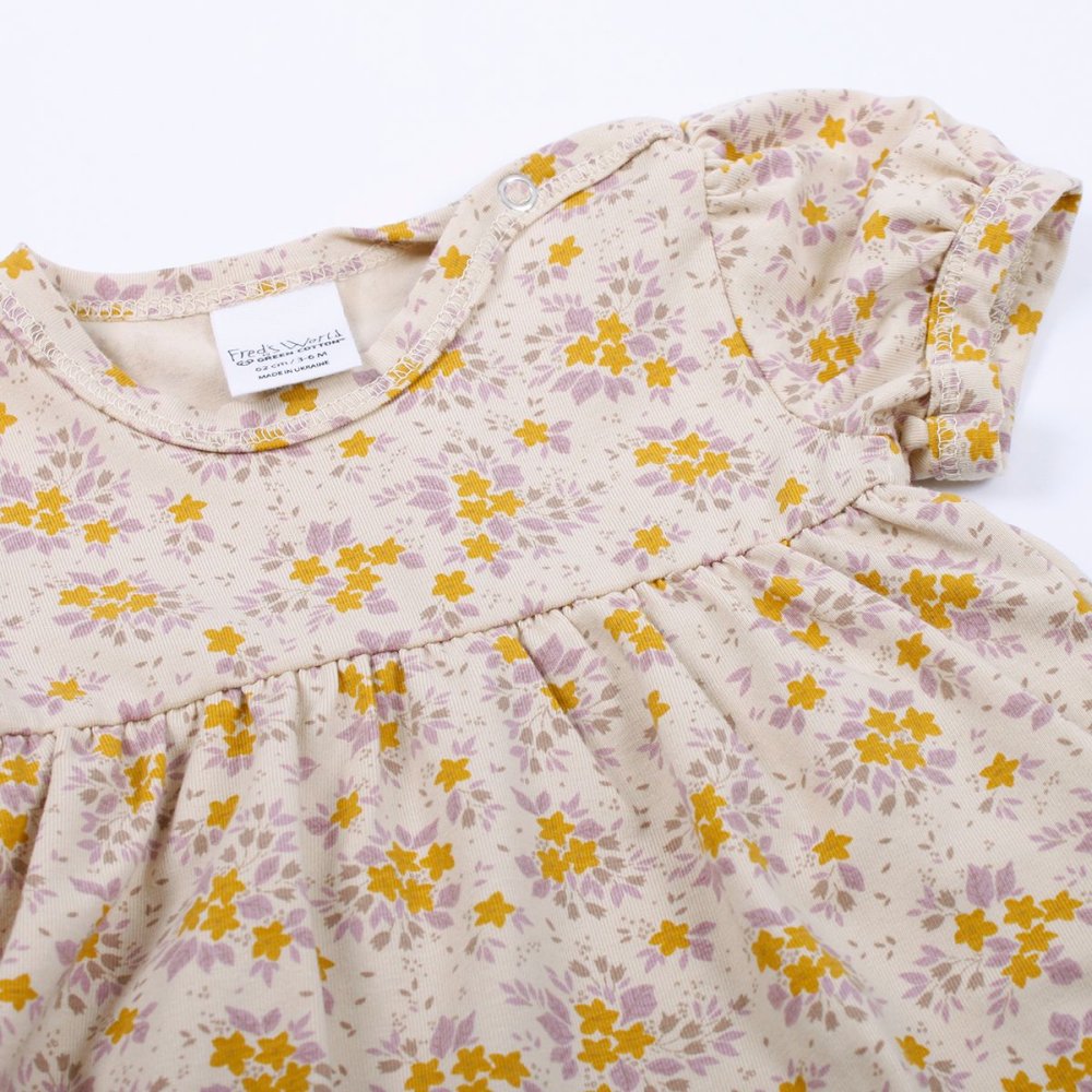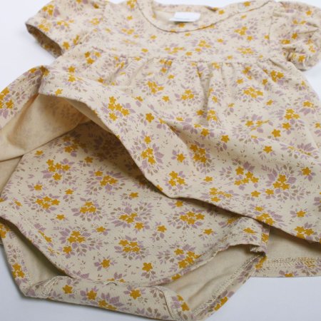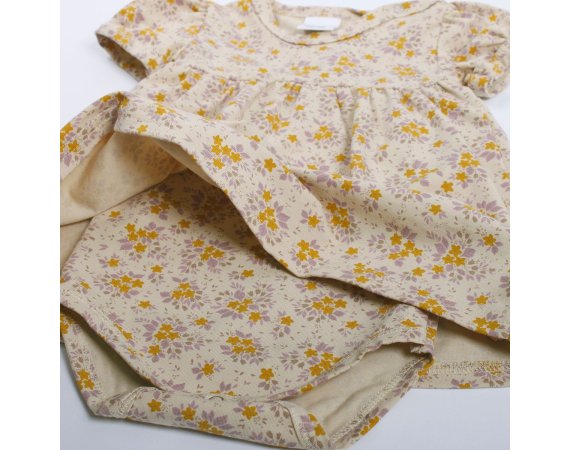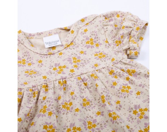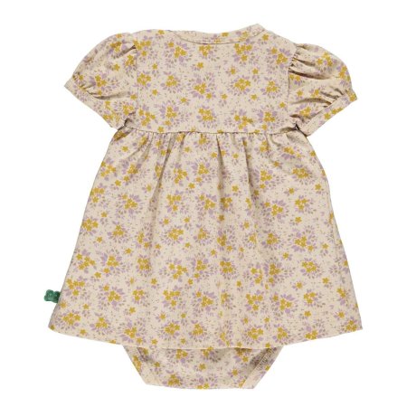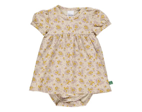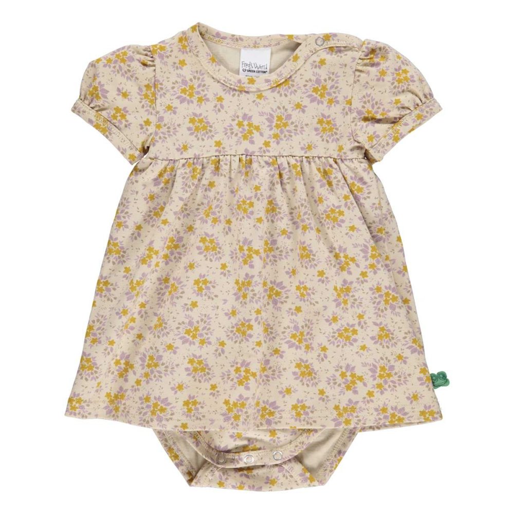 Super yndig kort ærmet body kjole i beige med skønne blomster fra Freds World.