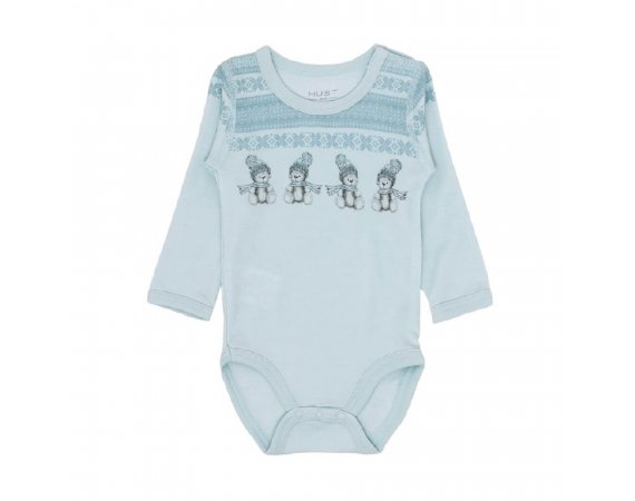 Langærmet bodystocking i en lækker blanding af uld og bambus/viskoseModellen har et sødt mønster og lukkes med trykknapper mellem benene, samt ved den venstre skulder. Den er blød og behagelig at have på, allergivenlig, antibakteriel og temperaturregulernede.