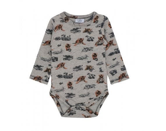 Bodystocking fra Hust&ClaireSej body til sønnike fra Hust&Claire. Bodyens grundfarve er grå men den har et overallprint af små motiver, heriblandt en orange sød tiger. Den er med lange ærmer og egner sig derfor perfekt til lidt køligere sommerdage. Den er fremstillet af ren og lækker bomuld samt en lille smule elastan der sikrer den perfekte pasform uanset vask og brug grundet den elastiske funktion.