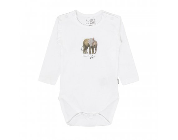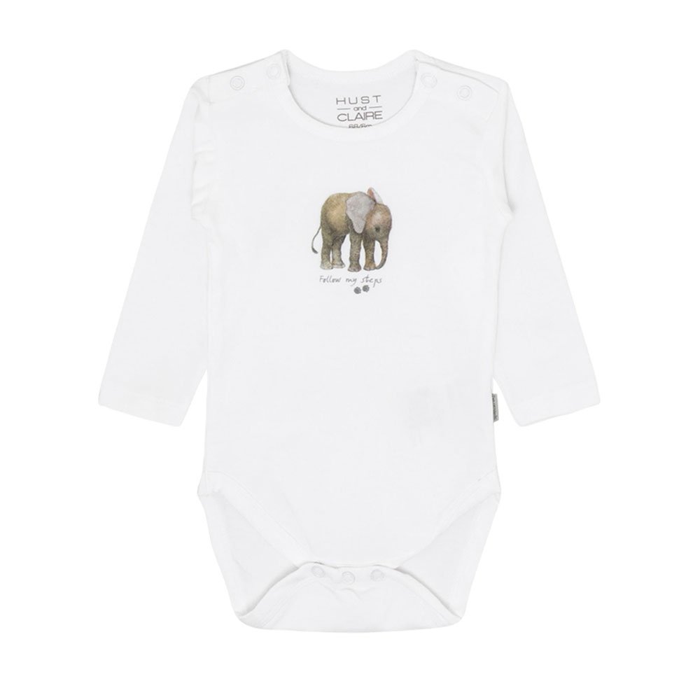 Hust and Claire Bebe Bodystocking L/S m. Elefant - Hvid
