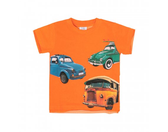 Skøn t-shirt i en flot orange farve med biler fra Hust & Claire