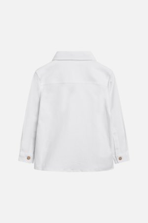 Klassisk hvid skjorte i jersey med brystlomme og fine skjortedetaljer