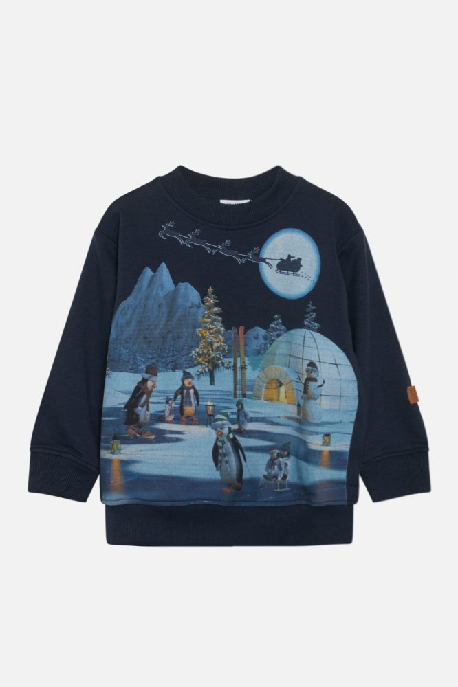 Smart sweatshirt med print af iglo, snemænd og pingviner fortil