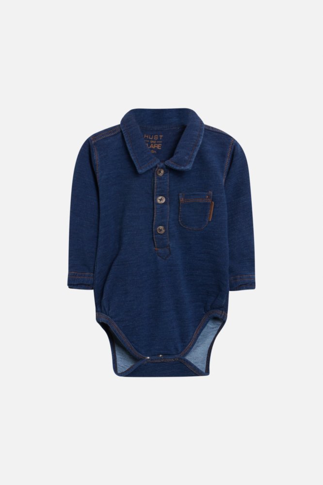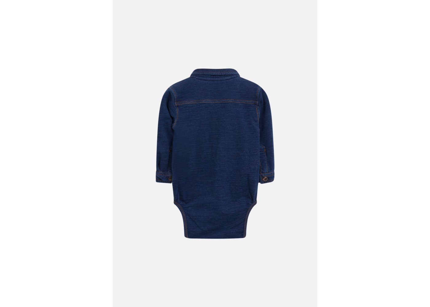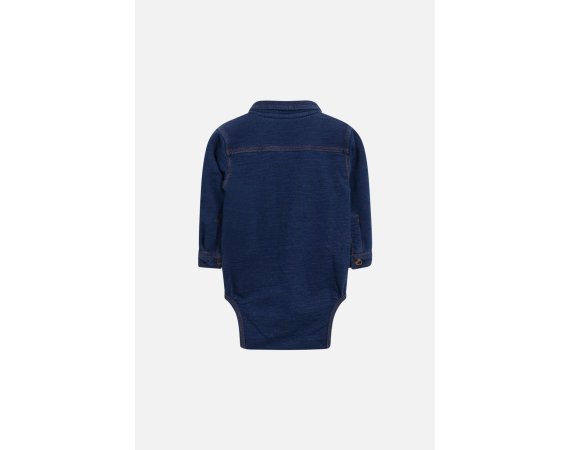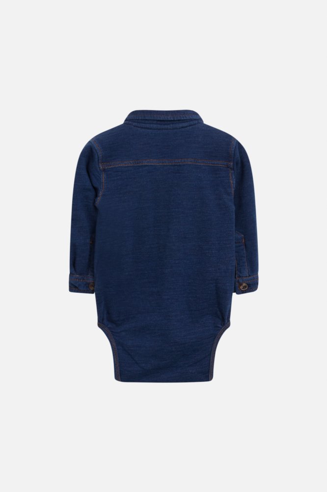 Smart langærmet skjortebody til hverdag eller festlige lejlighederBody med fin krave i denimlook og med synlige stikninger.