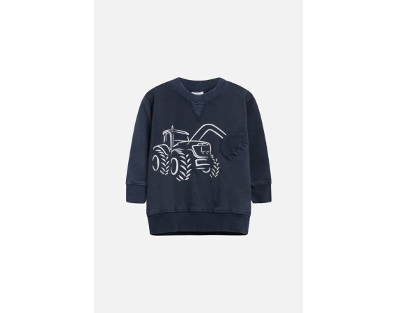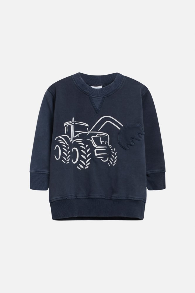 Smart ensfarvet sweatshirt med traktorprint og skovl applikation