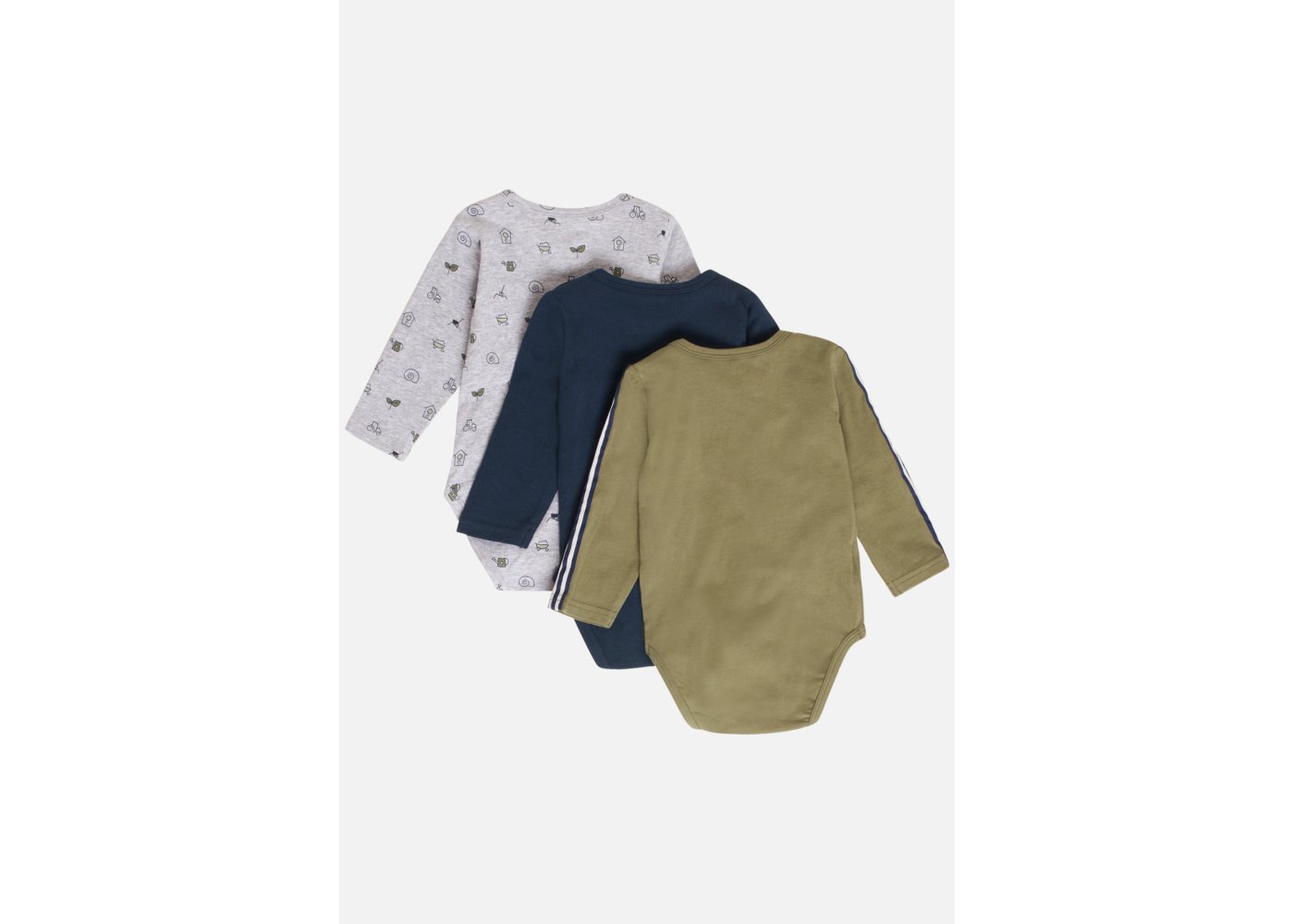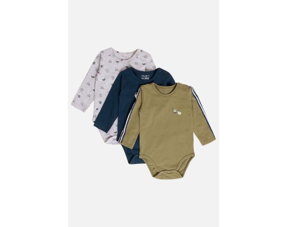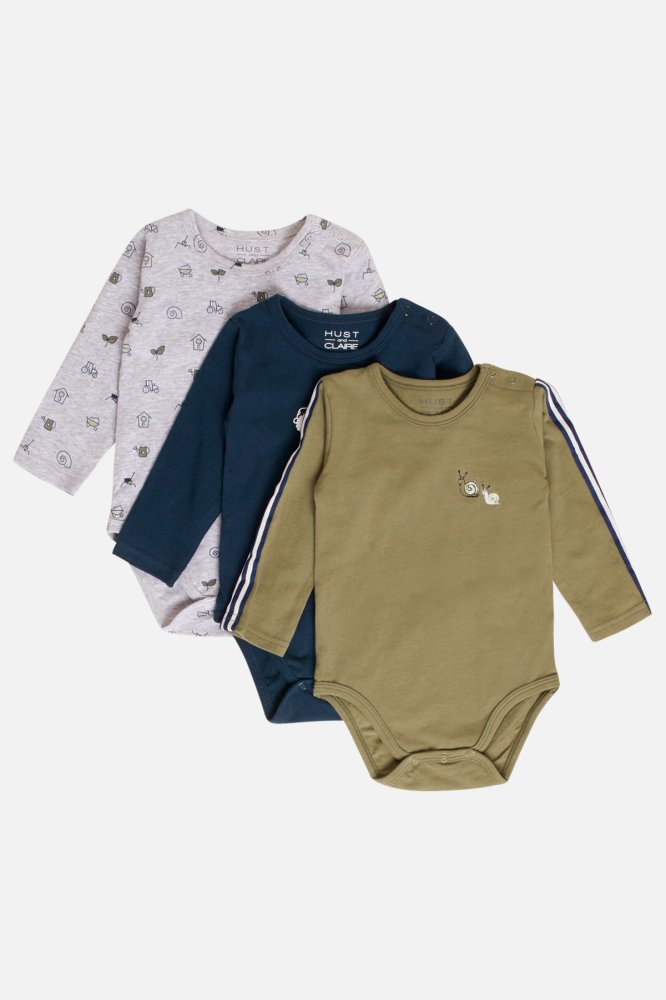 Body 3-pak med print i farverne grå, navy og army