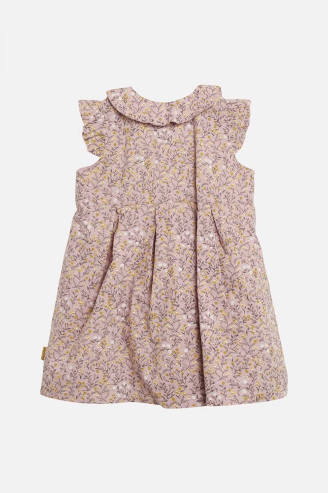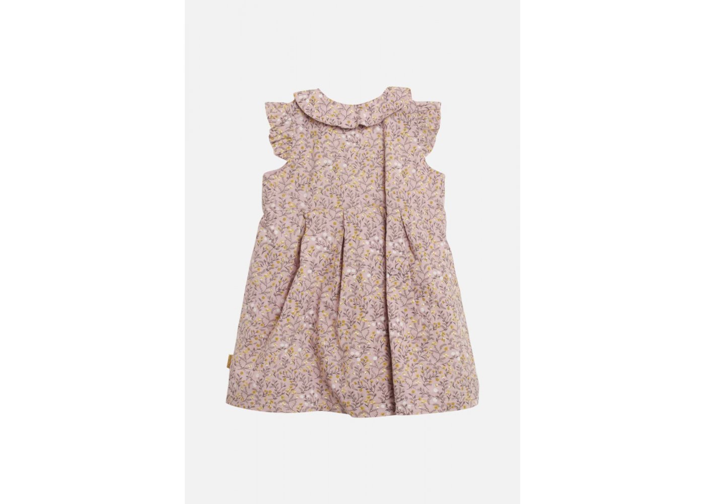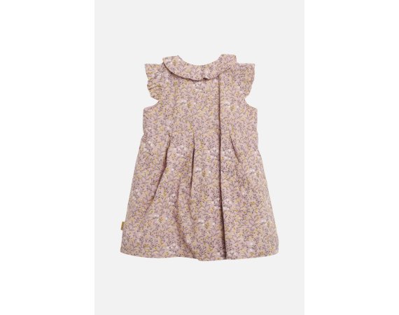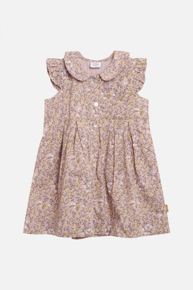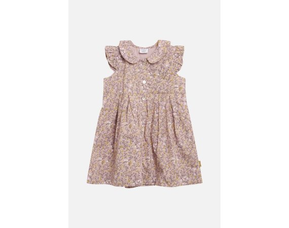 Sød kjole med krave og blomster printKjole uden ærmer og med flæsekant ved skuldre og en sød krave i halsudskæringen.