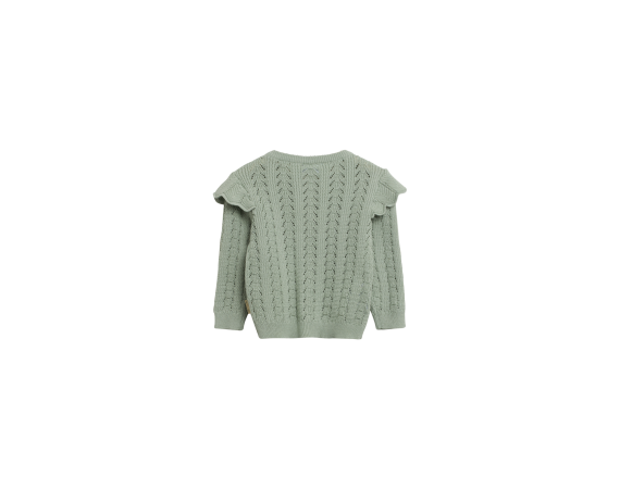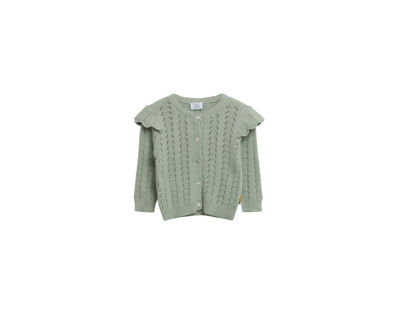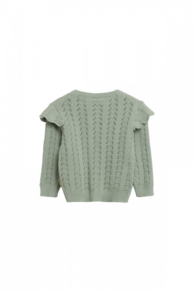 Lækker klassisk cardigan i blød strikCardigan med hulmønster og flæsedetaljer på skuldre.