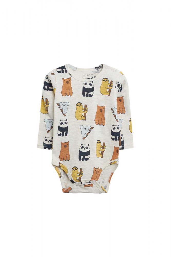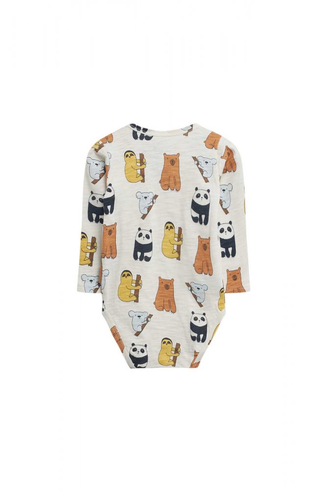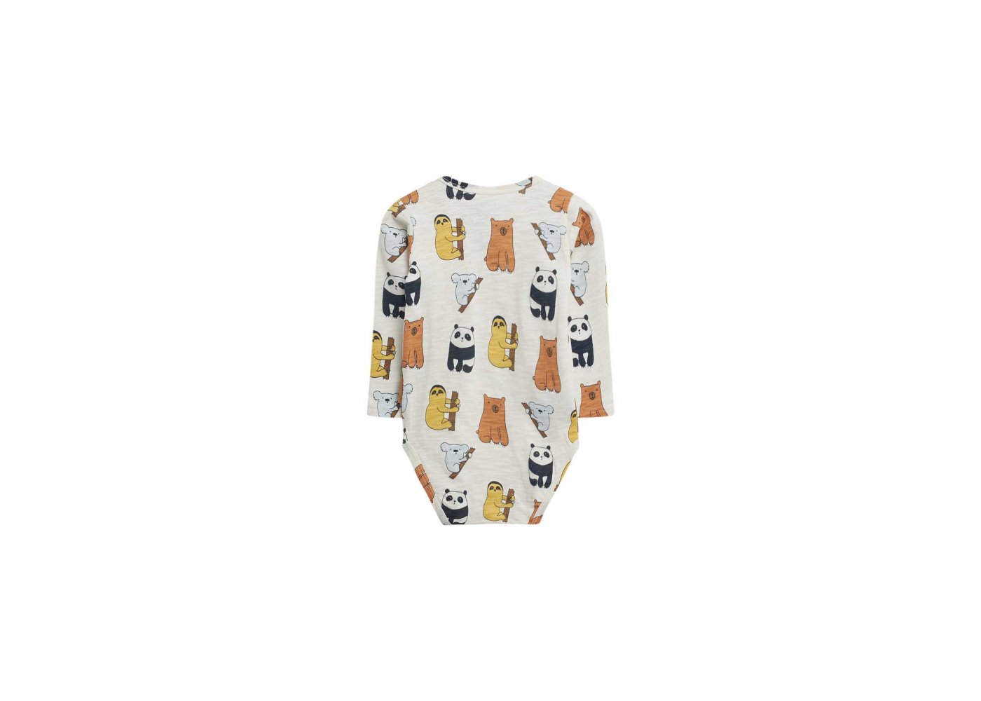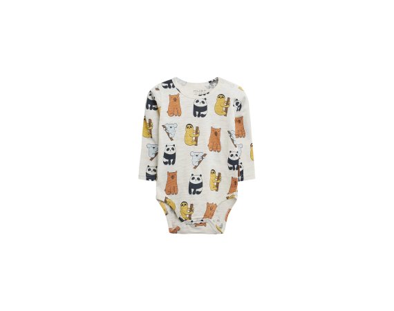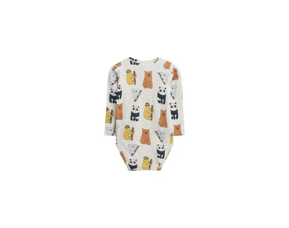 Sej body med de sødeste pandaer og dovendyrBody med lange ærmer i lækkert strækbart jersey stof og med ribkanter i alle åbninger.