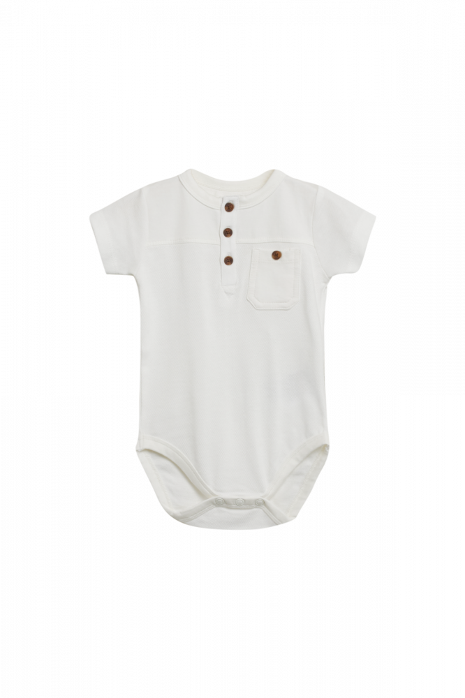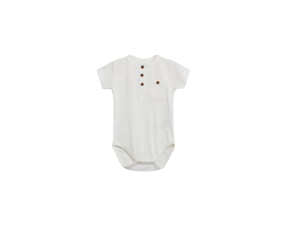Ensfarvet body med piqué foran, korte ærmer og stolpelukning foran
