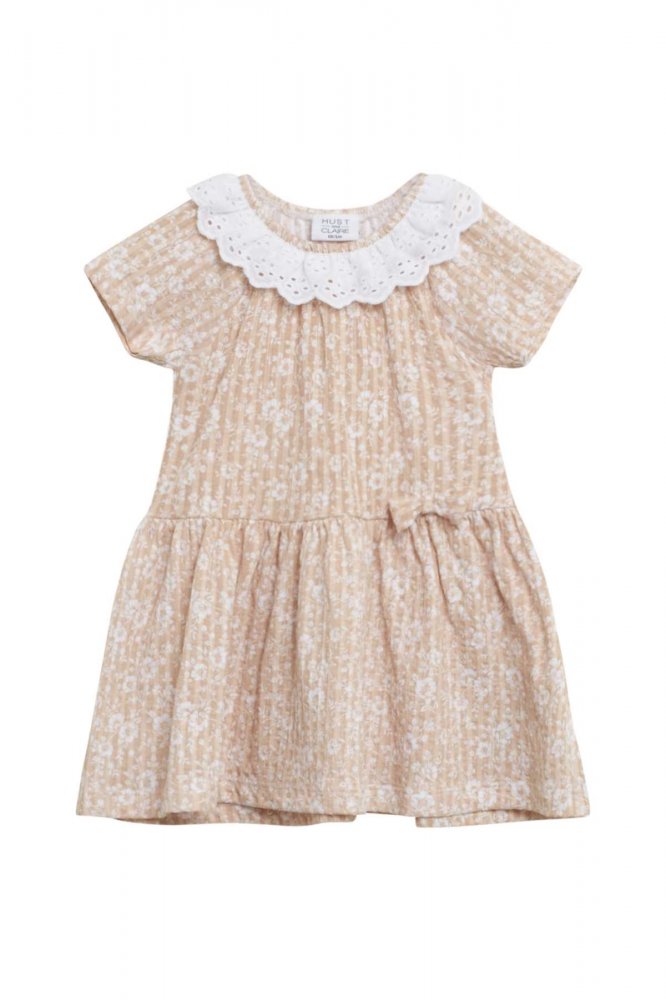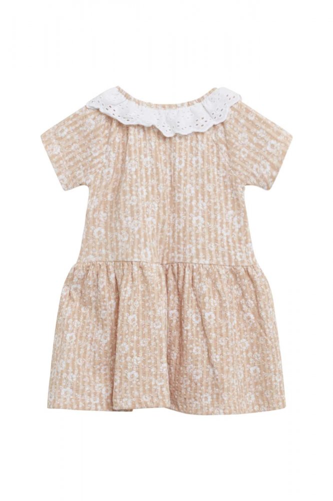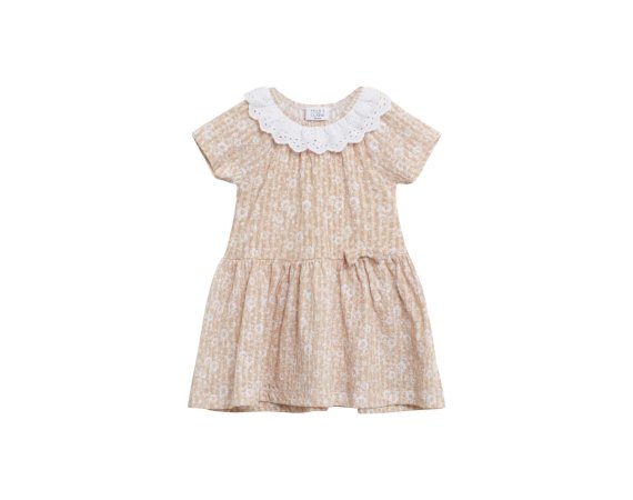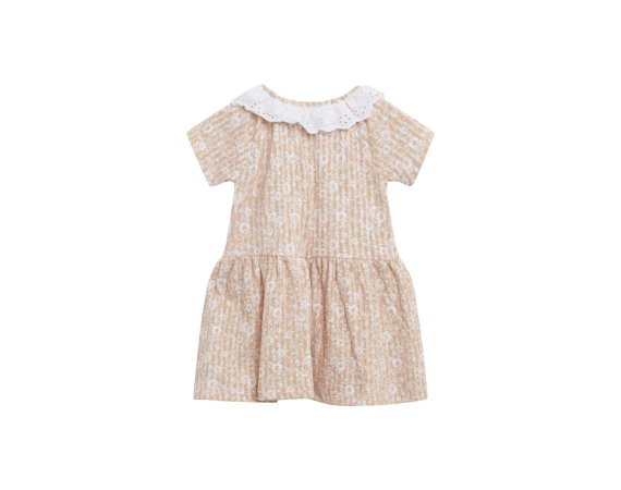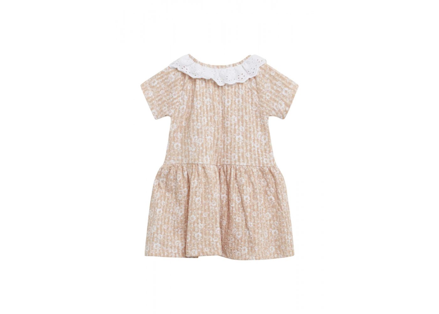 Kjole med hvid broderie anglaise-krave rundt i halsudskæring