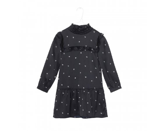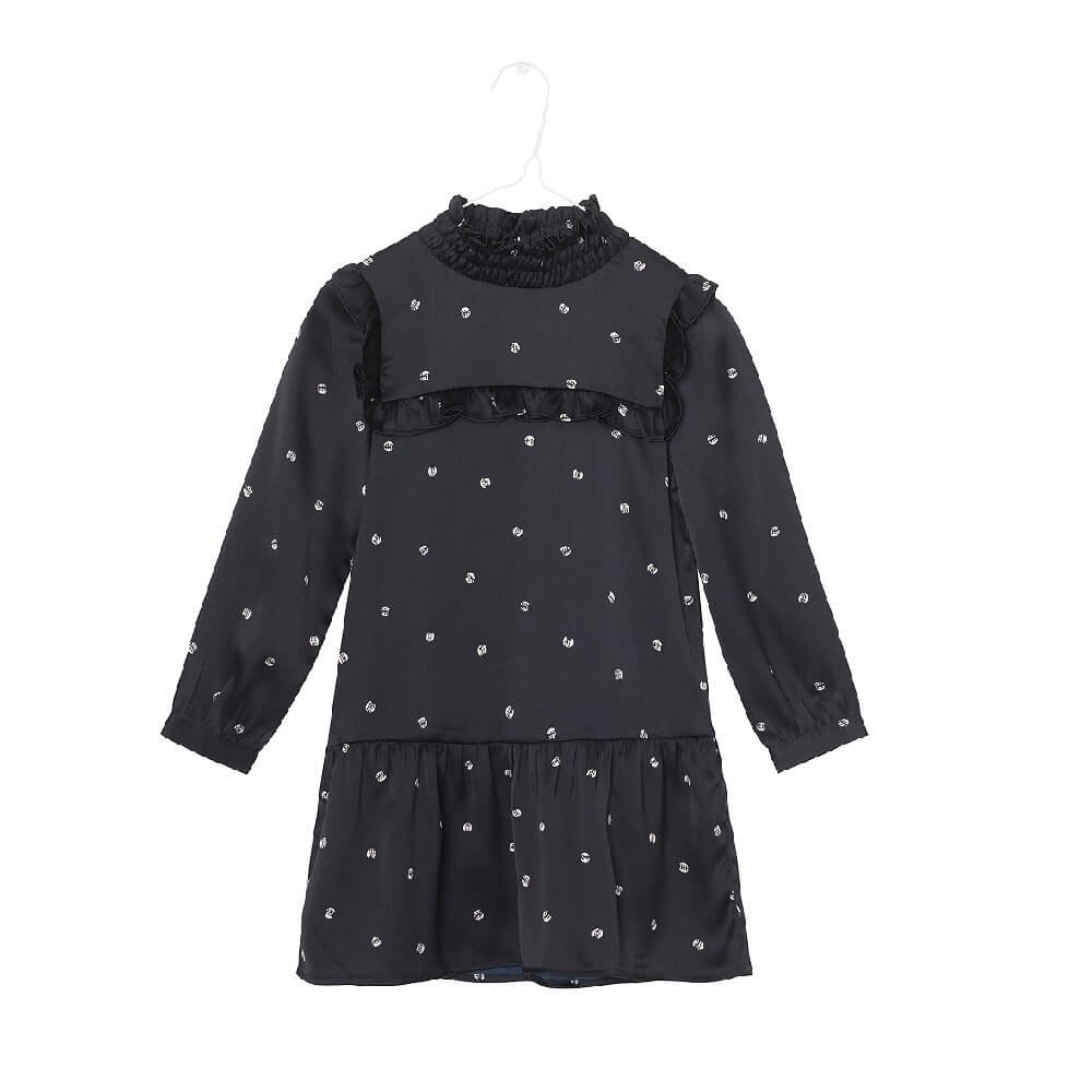 Super smuk kjole i mørkeblå med hvide prikker samt blonder fra Mini A Ture