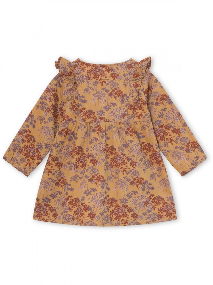 Smuk kjole med yndigt blomster printKjole med lange ærmer, smal syning og rynkedetaljer, som giver skørtet flotte folder og vidde. Kjolen har fine flæsekanter på overdelen, der giver den et rigtig sødt look.