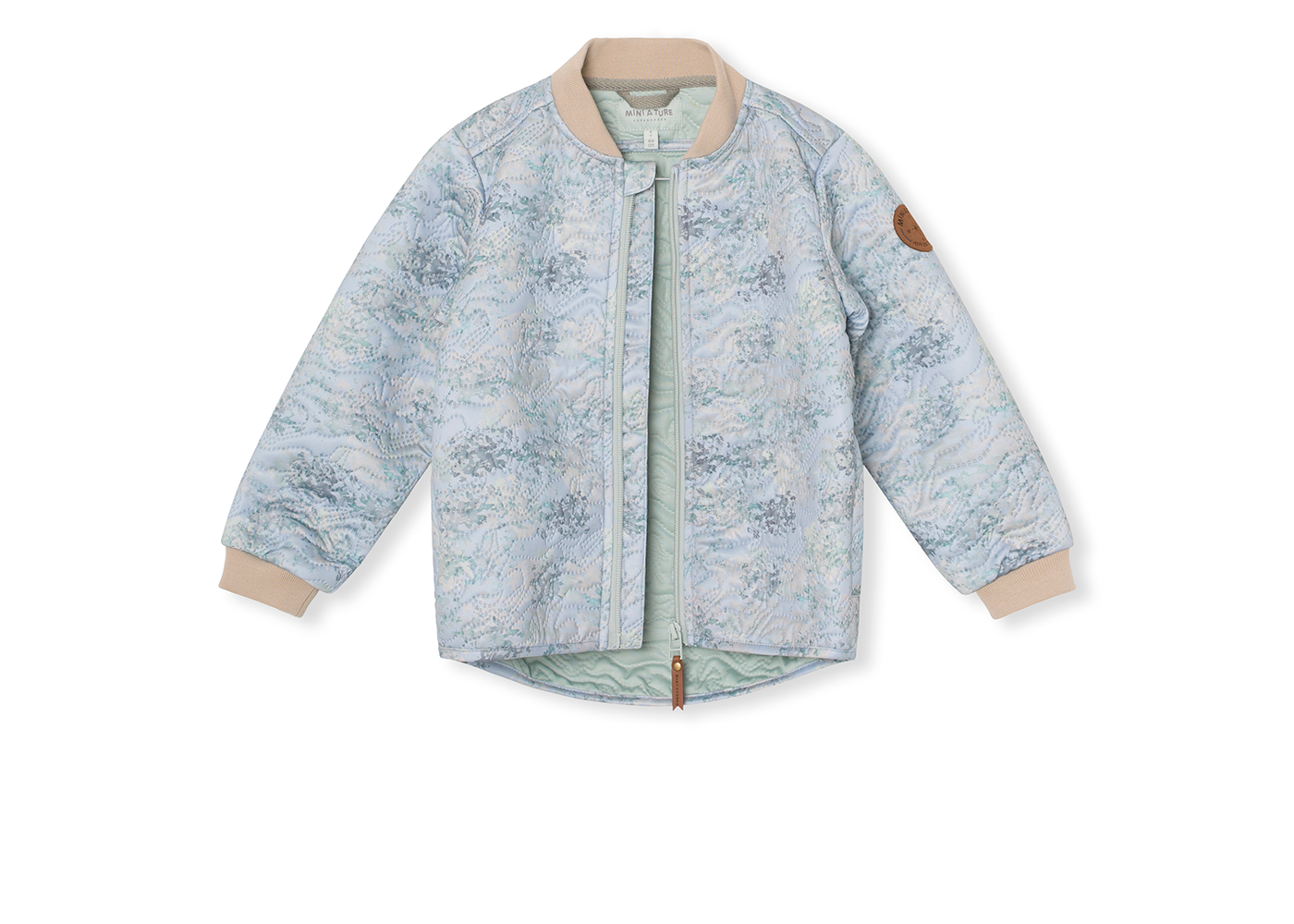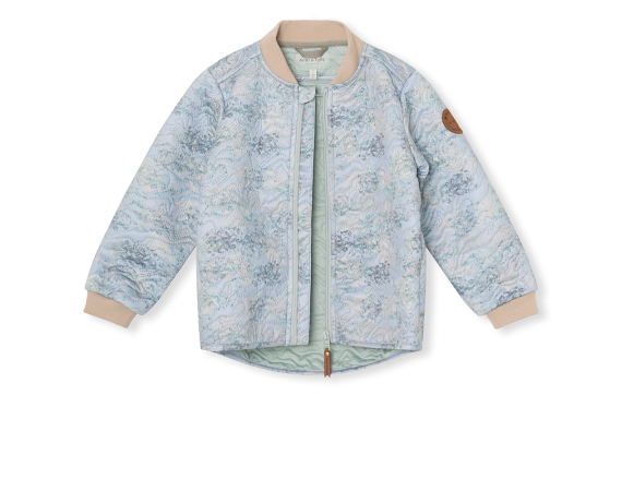 Termojakken har en blød ensfarvet rib i halsåbning og ved håndled. Jakken har et læderbadge på ærmet med MINI A TURE logo og MINI A TURE stjernerefleks placeret ved den ene lomme.