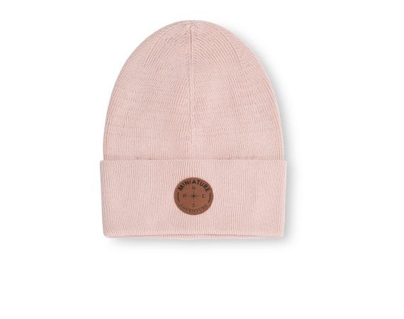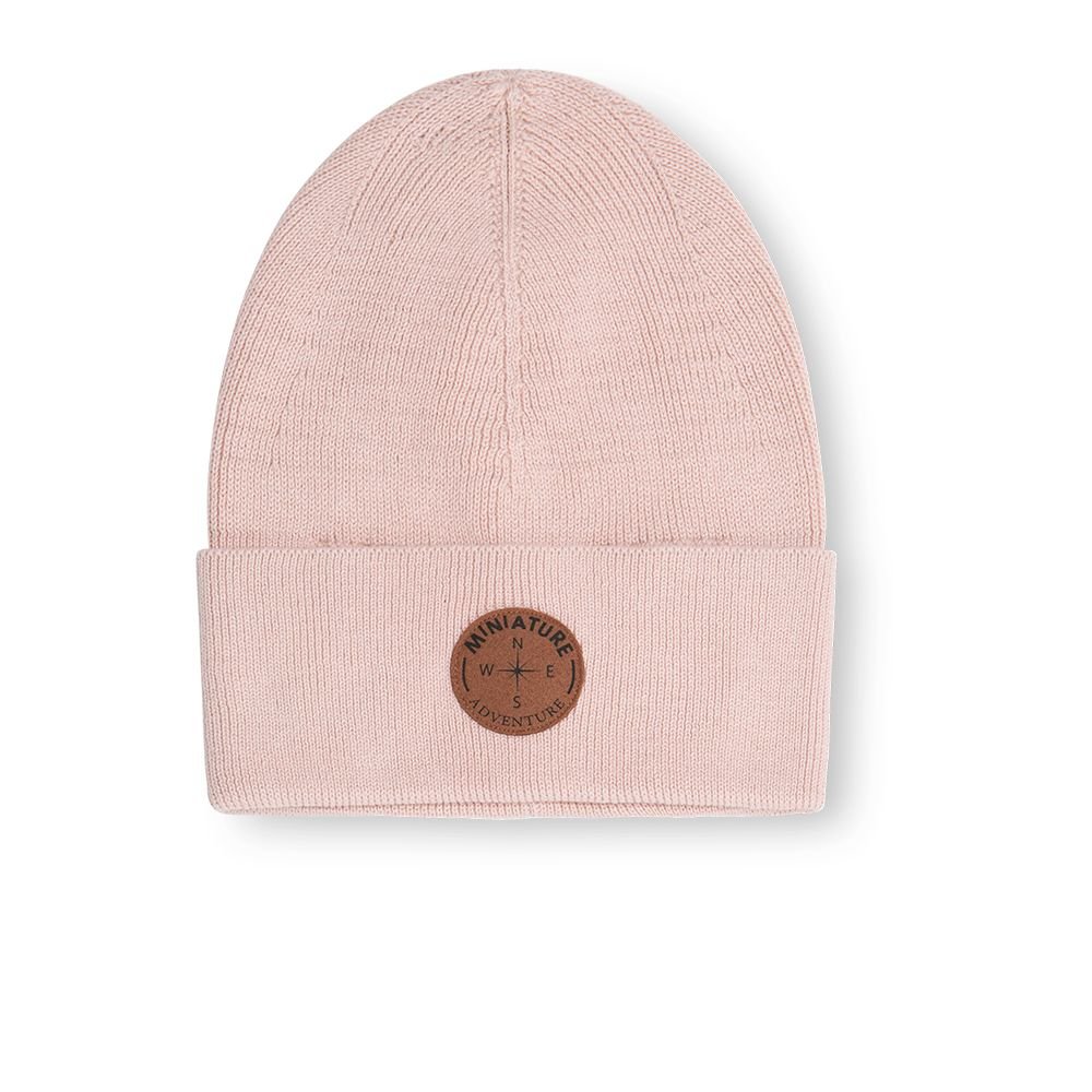 Lækker sommer hue med rund hovedform og bredt ombuk langs kanten med Mini A Ture logo.