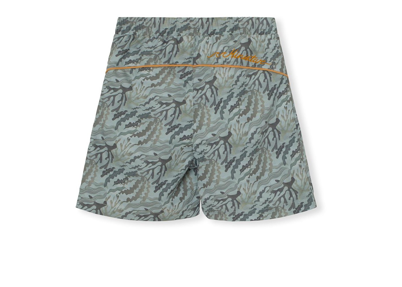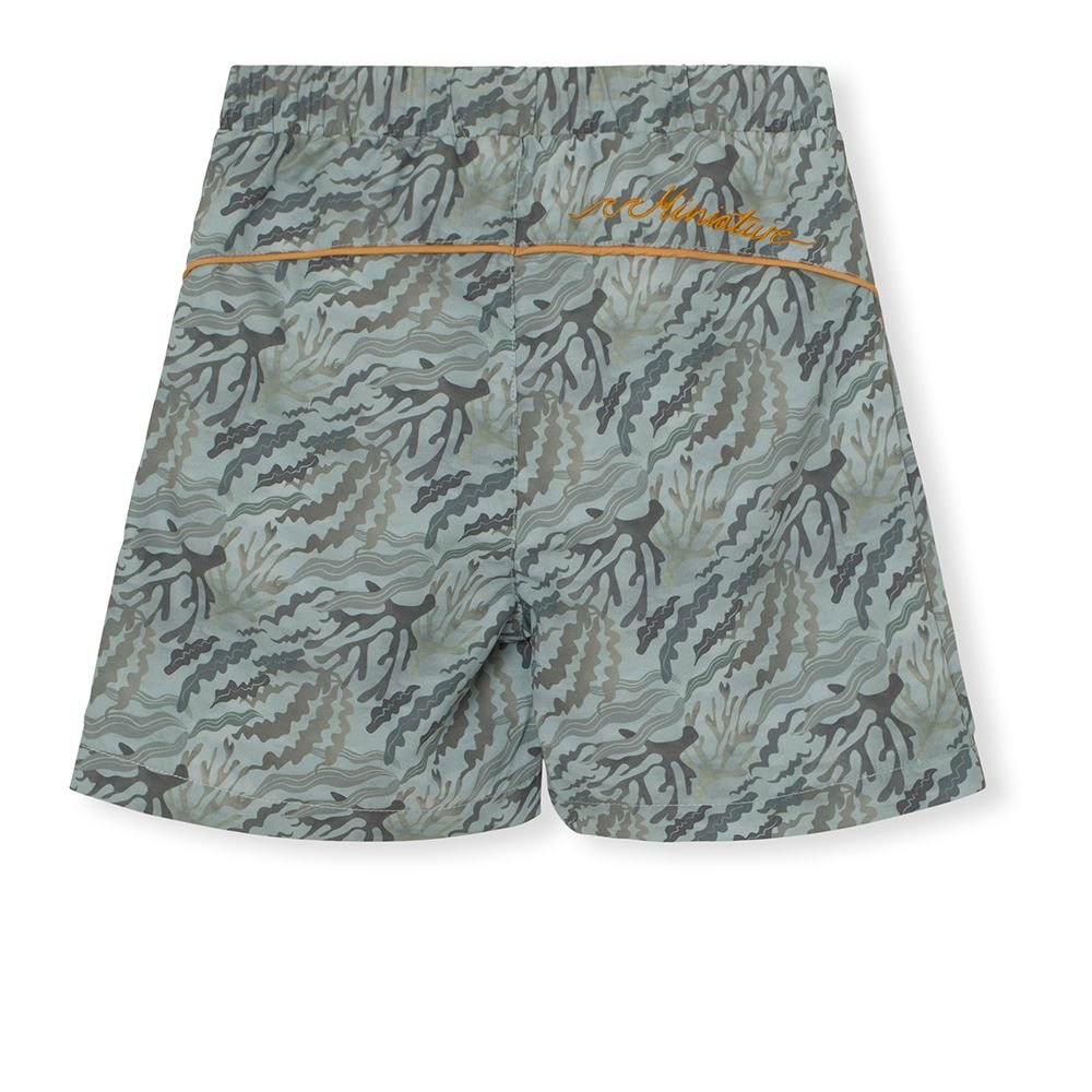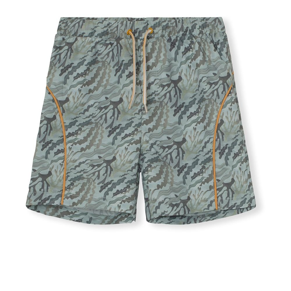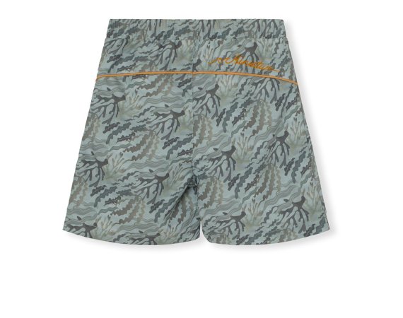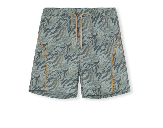 Badeshortsene har kontrast pipingbånd langs ben og indvendig mesh underbuks og passer rigtig fint sammen med Asmus hat i samme design.