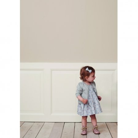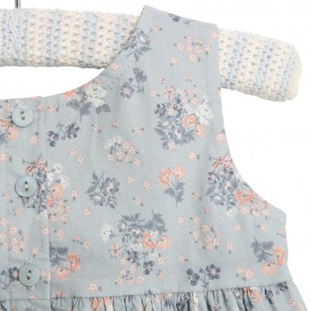 Smuk bomuldskjole uden ærmer med håndtegnet design blomsterprintKjolen er to-delt med rynkeeffekt over brystet og lukkes bagpå med knapper.