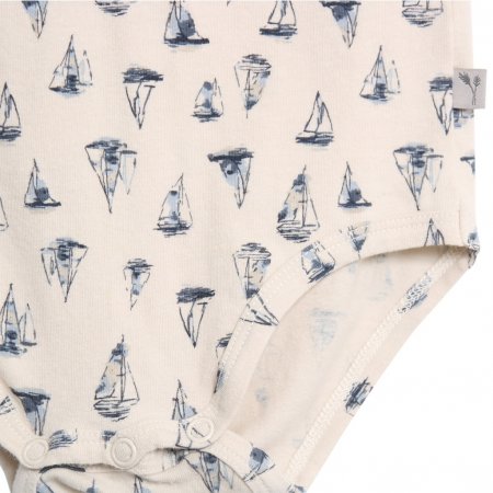 Lækker body med håndtegnet design sejlbådeprintBodyen lukkes med trykknapper på venstre skulder og imellem ben.