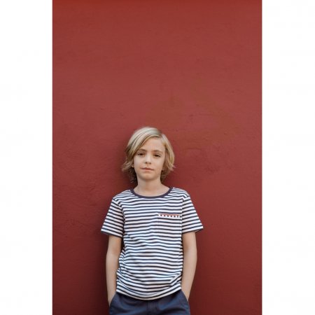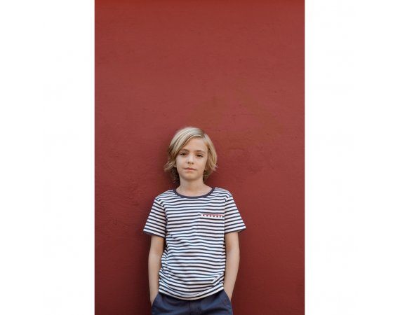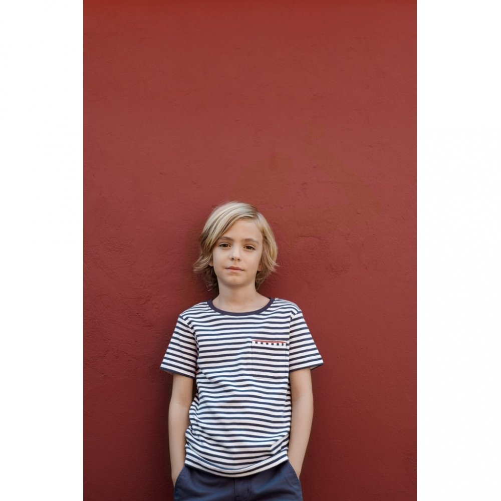 Sporty kortærmet t-shirt med striber og smart brystlomme