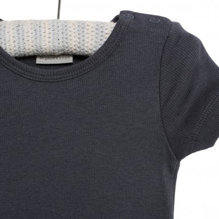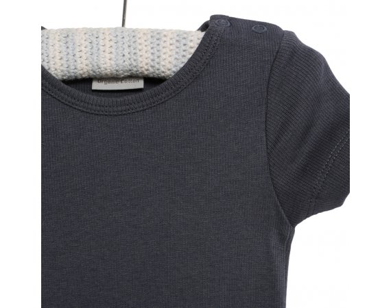 Lækker rib body med korte ærmerBodyen er fremstillet i en blød, økologisk bomuldsblanding og lukkes med trykknapper på venstre skulder og imellem ben.