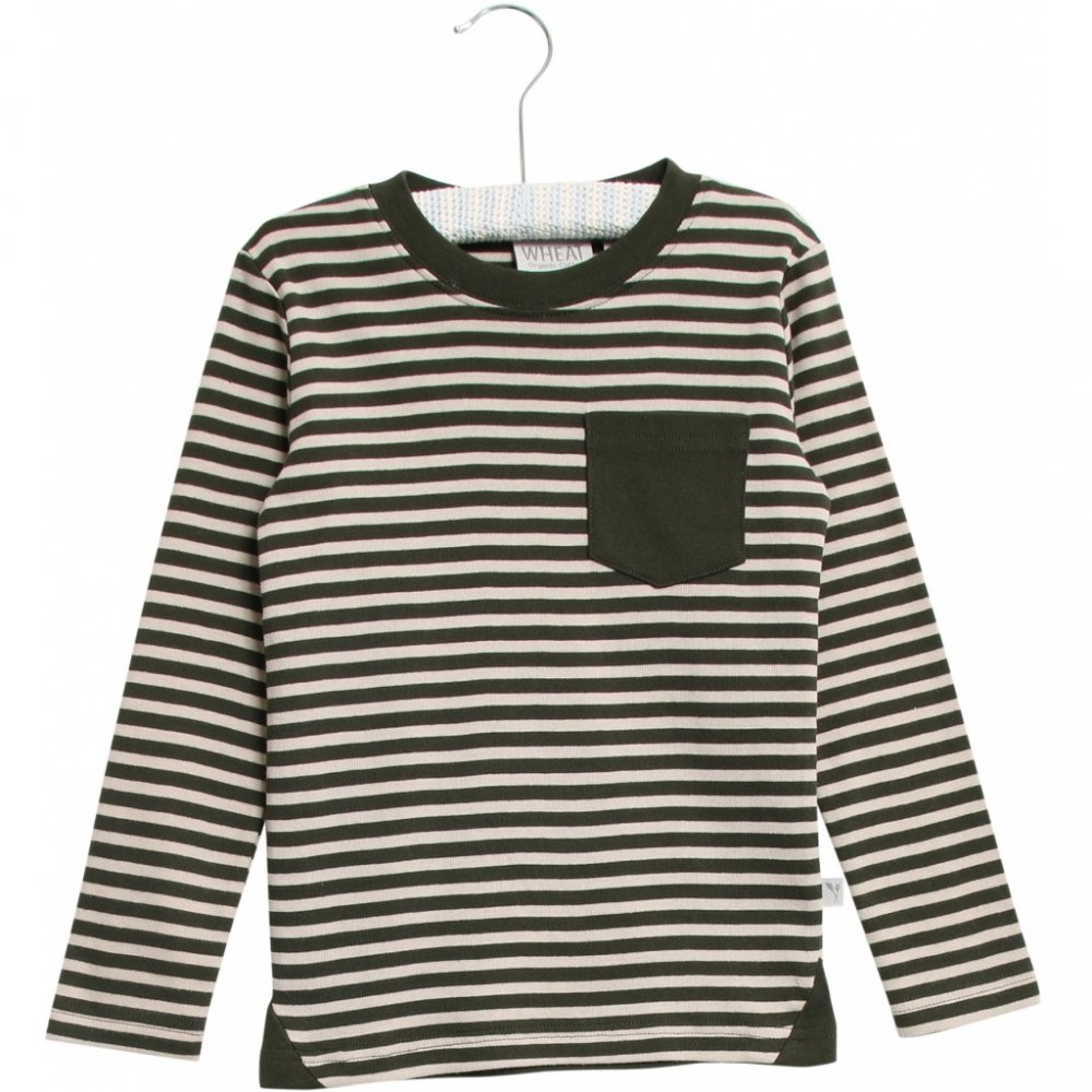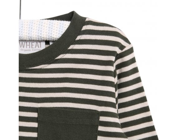Smart klassisk t-shirt med rund hals og striberT-shirten har en fin ensfarvet brystlomme, lange ærmer og fremstillet i blød økologisk bomuld.