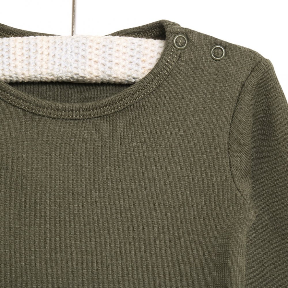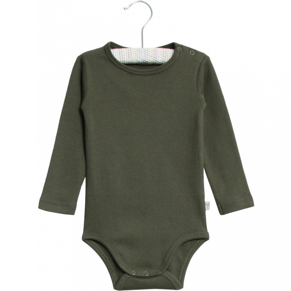Body med lange ærmer i lækker rib jerseyLækker og enkel body med rib kant i hals og ved ben.