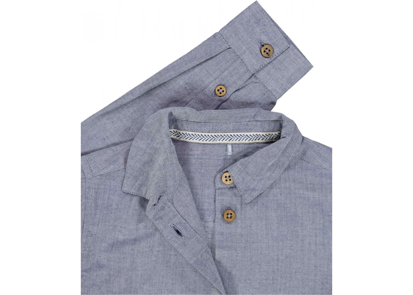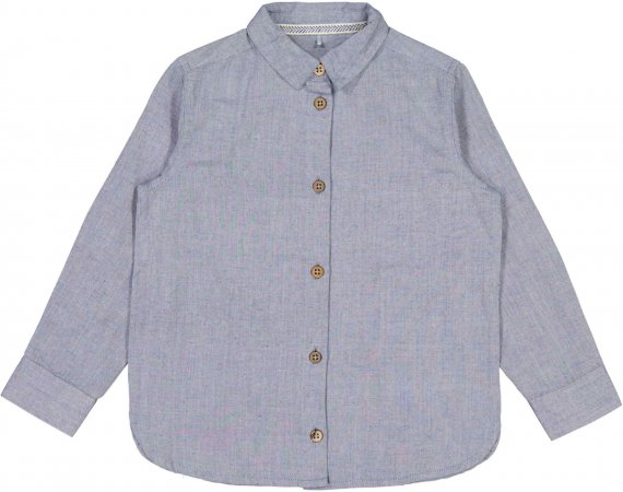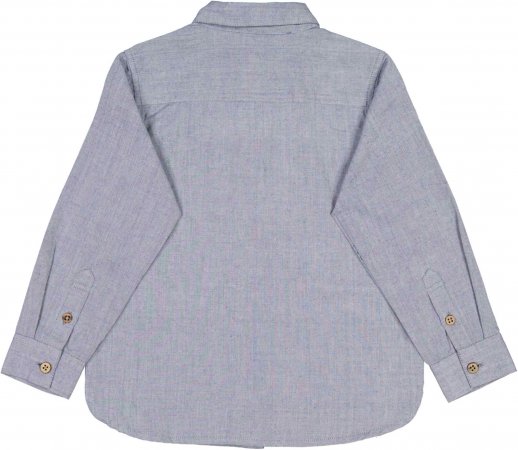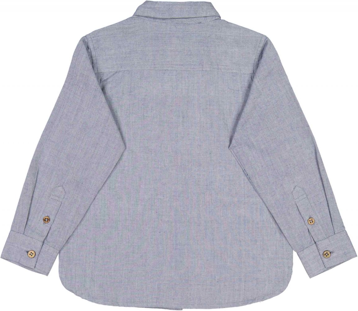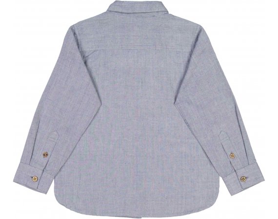 Lækker og smart langærmet blåmeleret skjorte i blød økologisk chambray bomuld.Skjorten har en klassisk krave, knaplukning foran og fine og praktiske manchetknapper ved håndled.