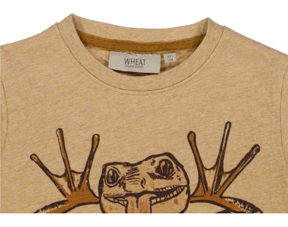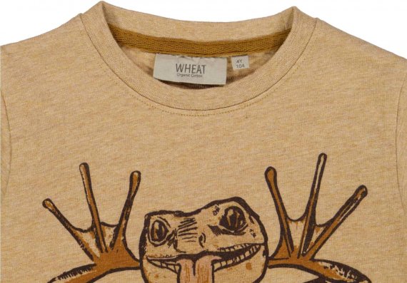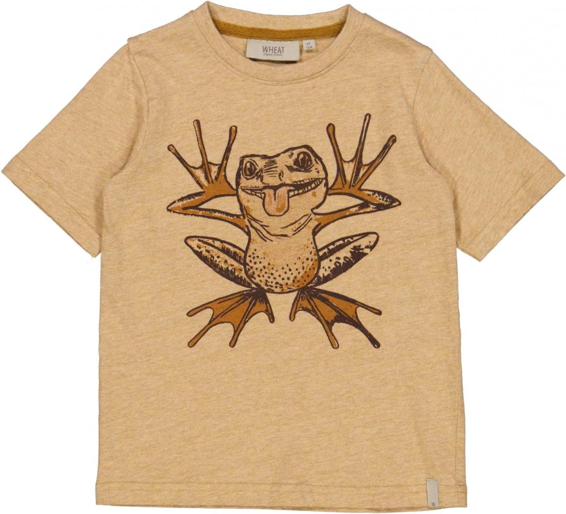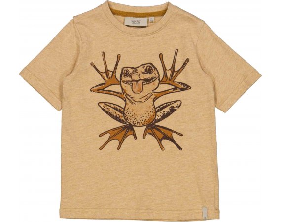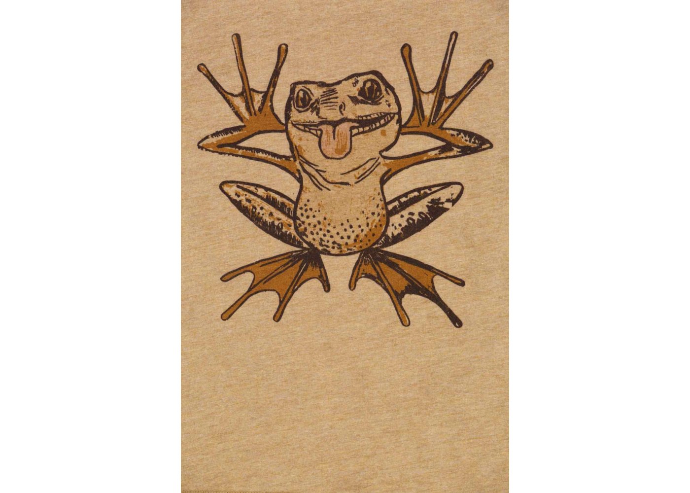 Sjov t-shirt i meleret brun med print af en fræk frø, der rækker tunge.T-shirten har korte ærmer og en smal ribkant i halsåbningen. T-shirten er lavet i en lækker og blød bomuldskvalitet.