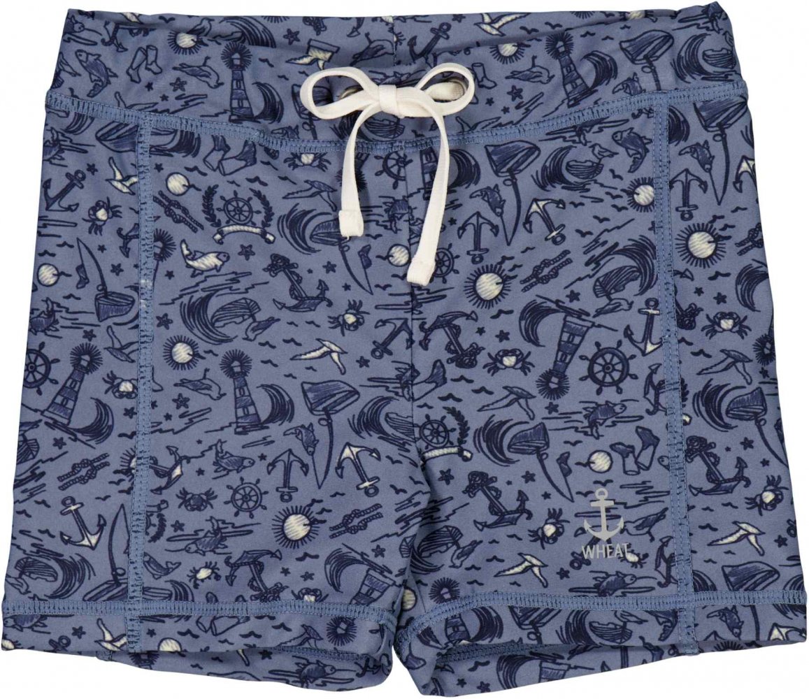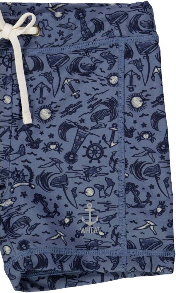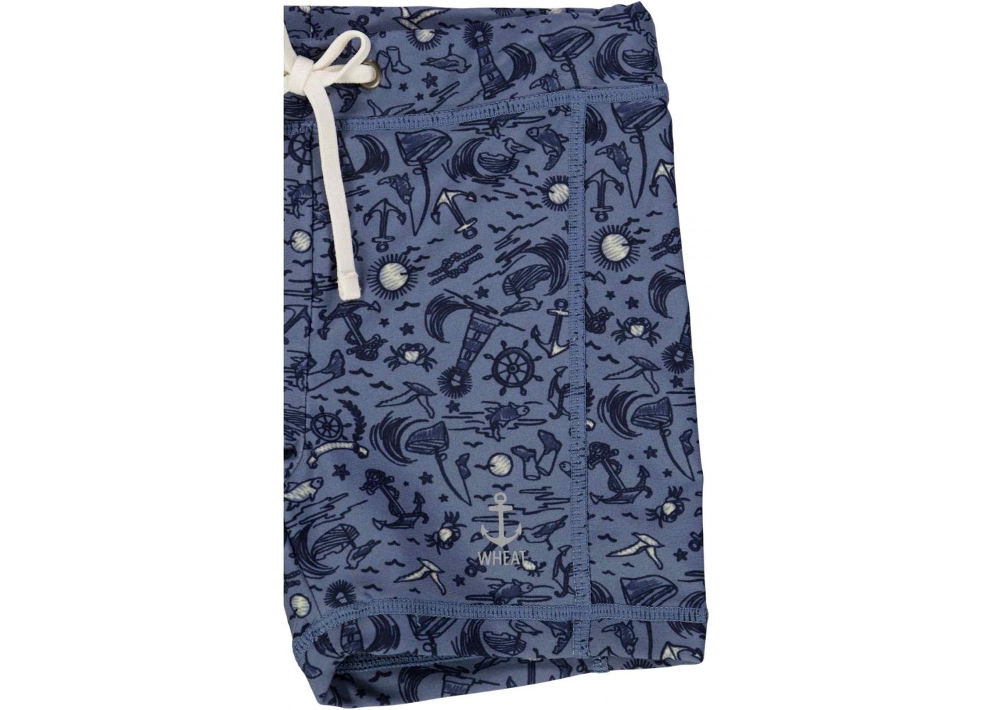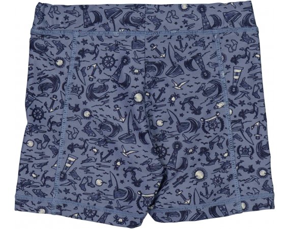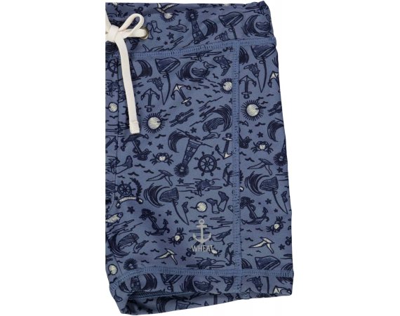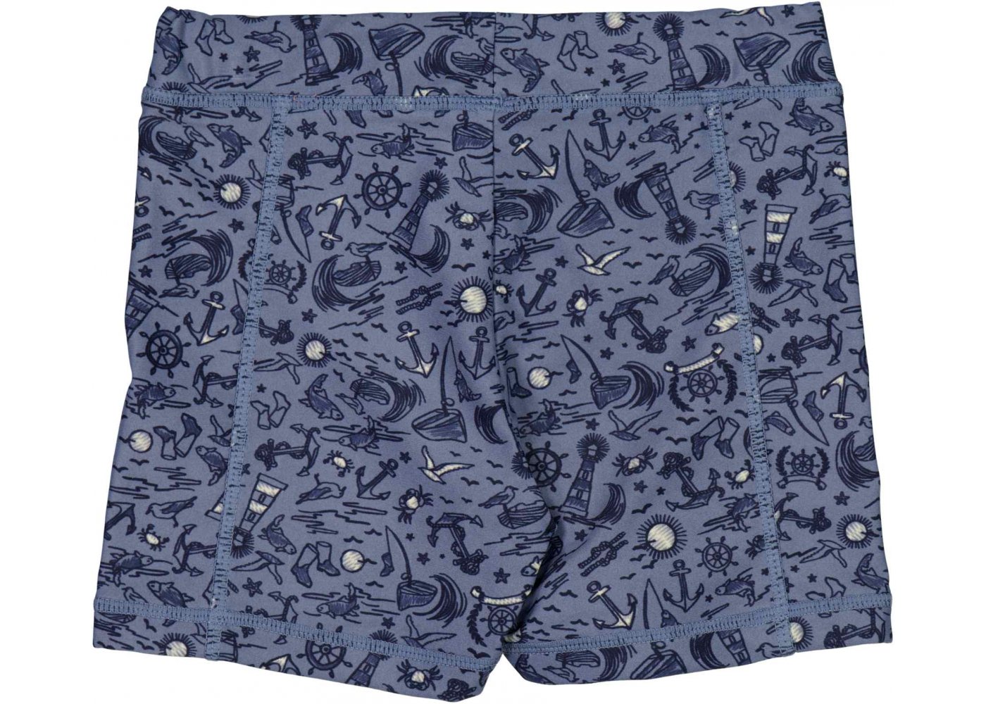 Flotte drenge badeshorts i blå med maritimt tema og UV 50+/UPF 50+ beskyttelse.Shortsen har bindebånd i talje.