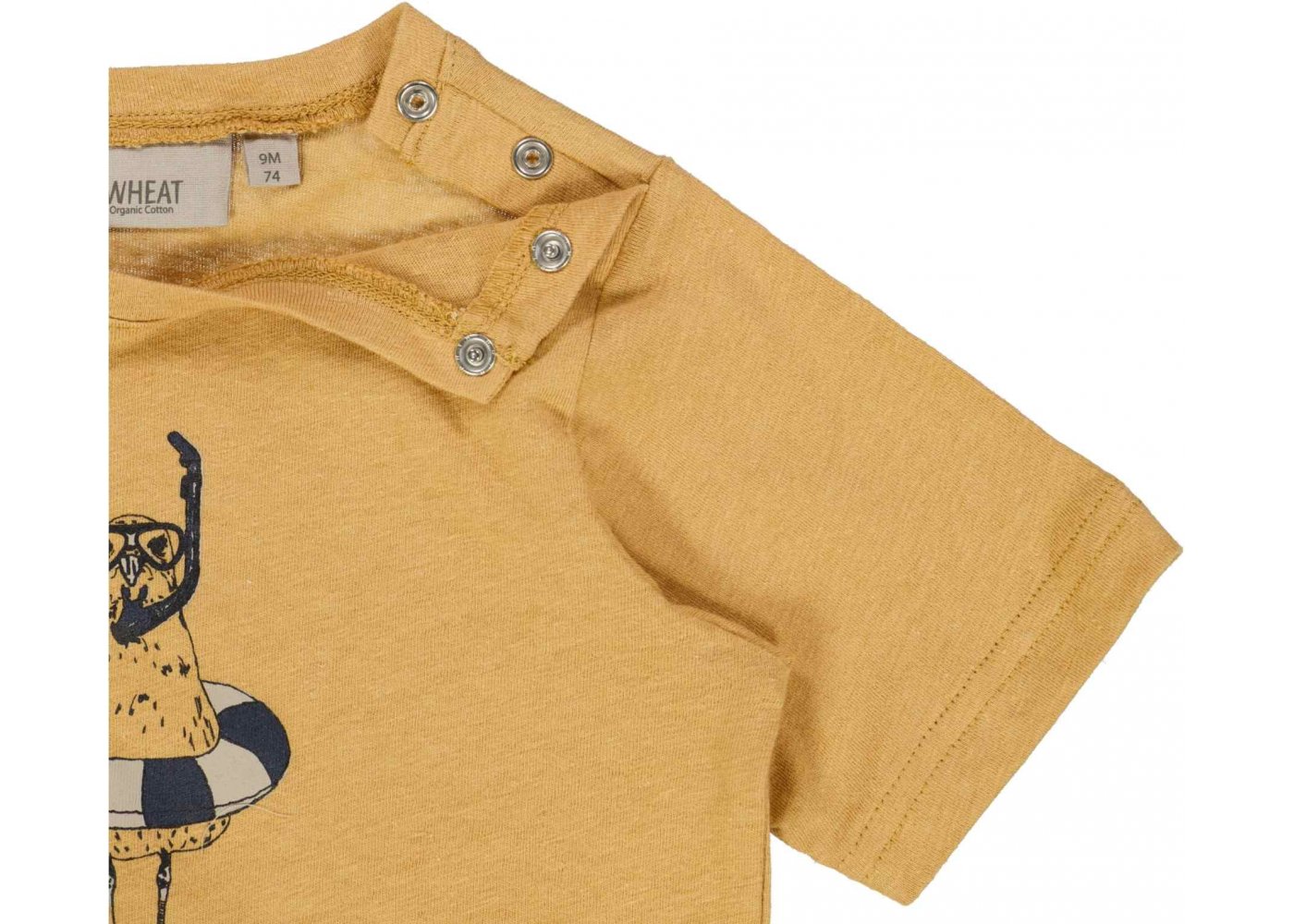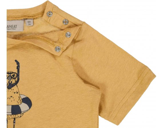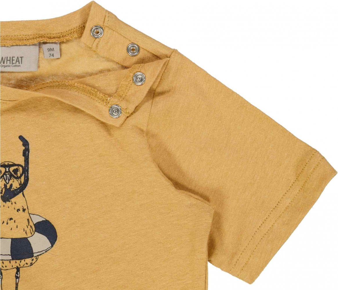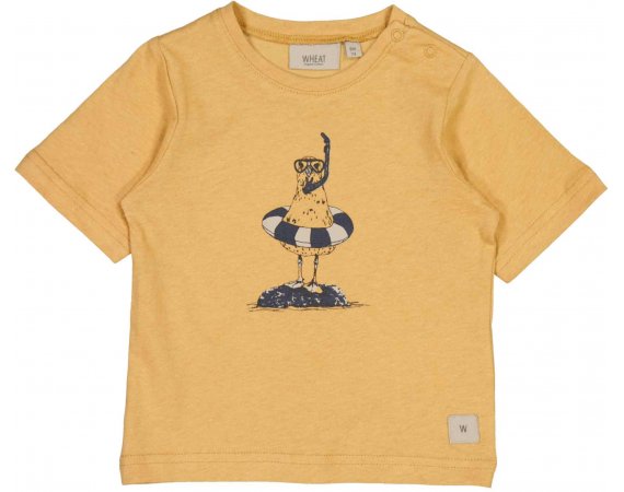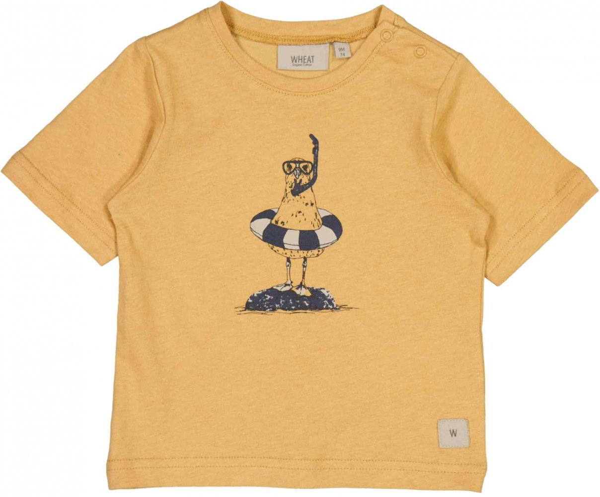 Sød kortærmet t-shirt med sjovt mågemotiv foran.T-shirten lukkes med trykknapper på venstre skulder og er lavet i en lækker og strækbar bomuldskvalitet.