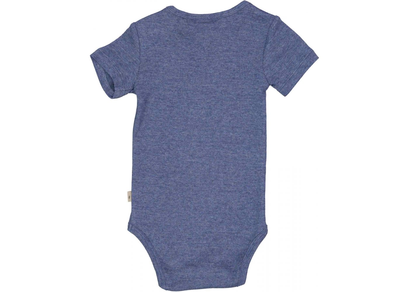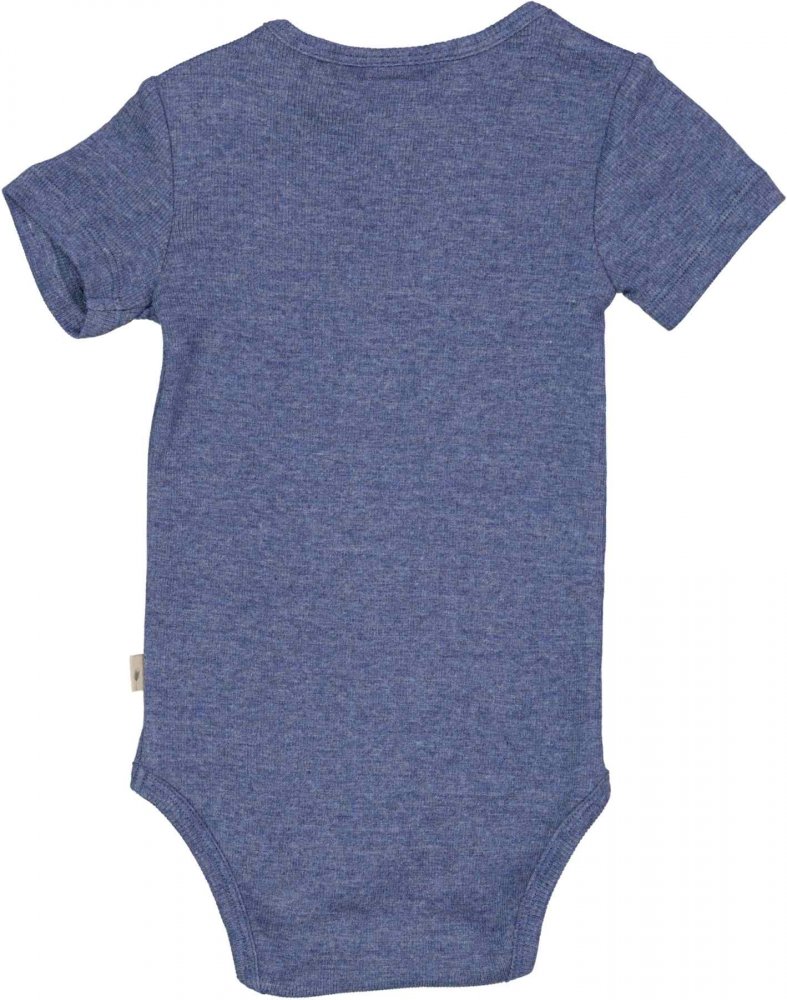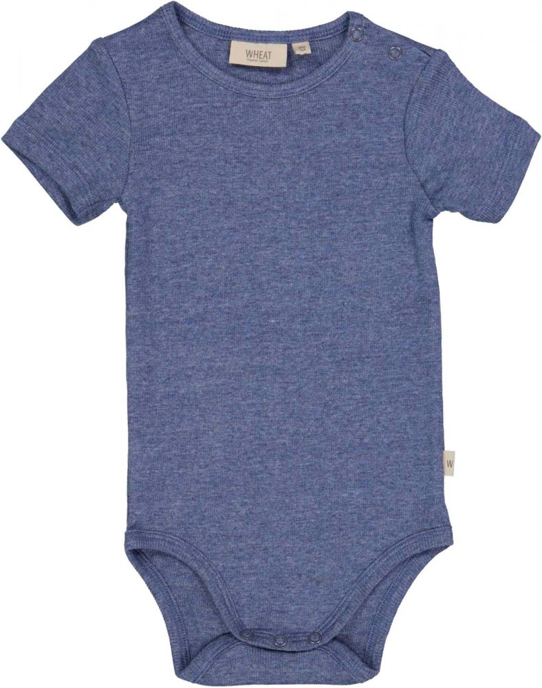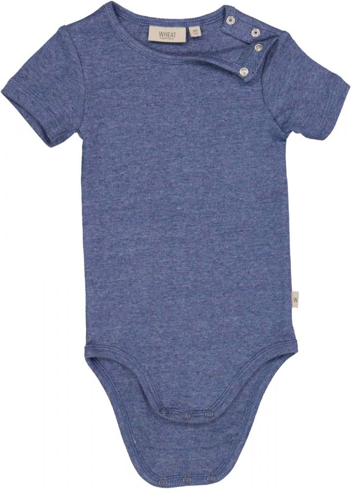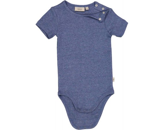 Lækker kortærmet body i blå farve fra Wheat.Bodyen lukkes med trykknapper på venstre skulder og imellem ben.