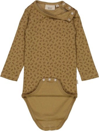Lækker lysebrun langærmet body med fine blade og nødder fra Wheat.