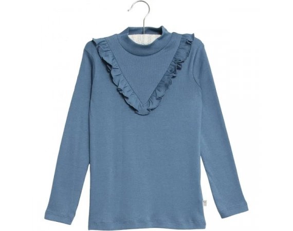 Wheat Rib T-Shirt med Flæse, Blue Horizon