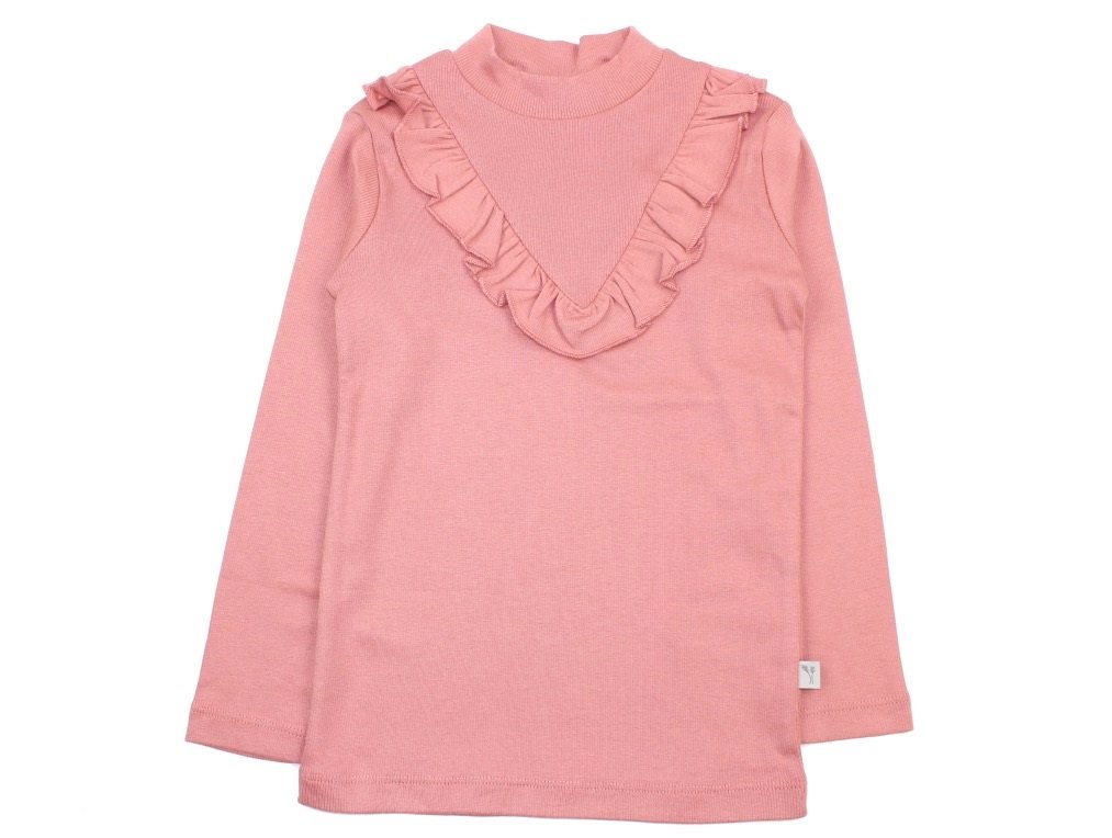 Wheat Rib T-Shirt med Flæse, Peach Rose