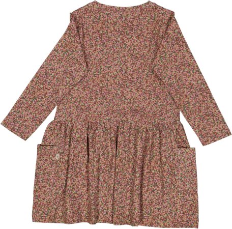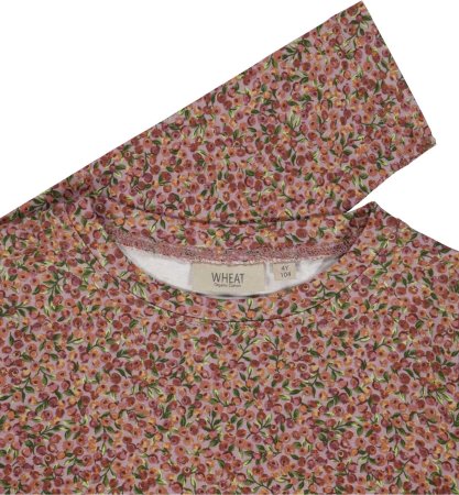 Langærmet kjole fyldt med håndtegnede, smukke bær i rosa og grønne nuancer fra Wheat.