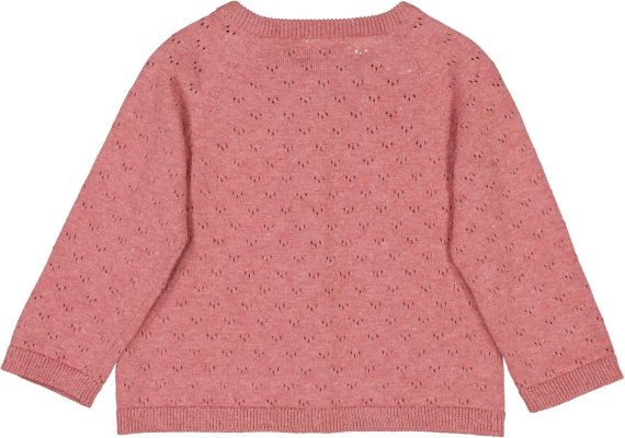 Smart langærmet lyserød cardigan i klassisk pointelle-strikmønster fra Wheat.