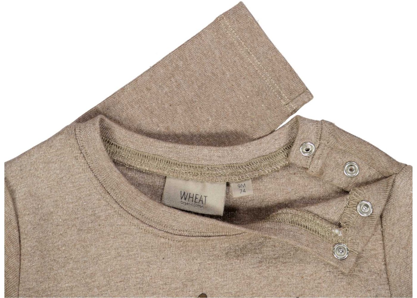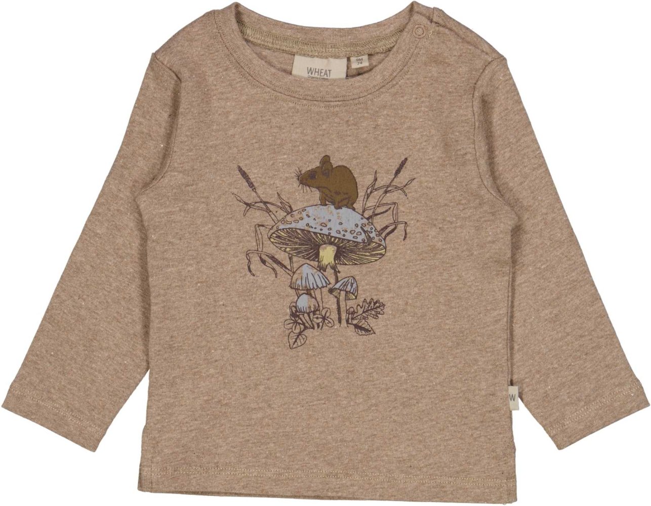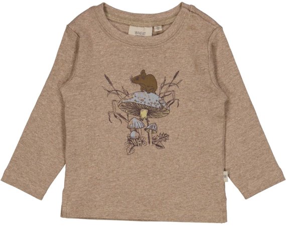 Super sød t-shirt med et unikt håndtegnet mus, der sidder på en paddehat fra Wheat.