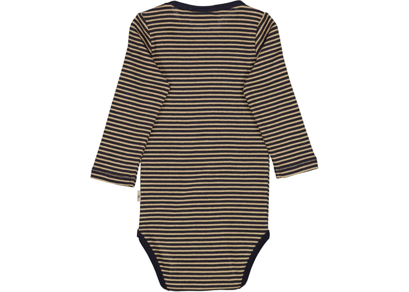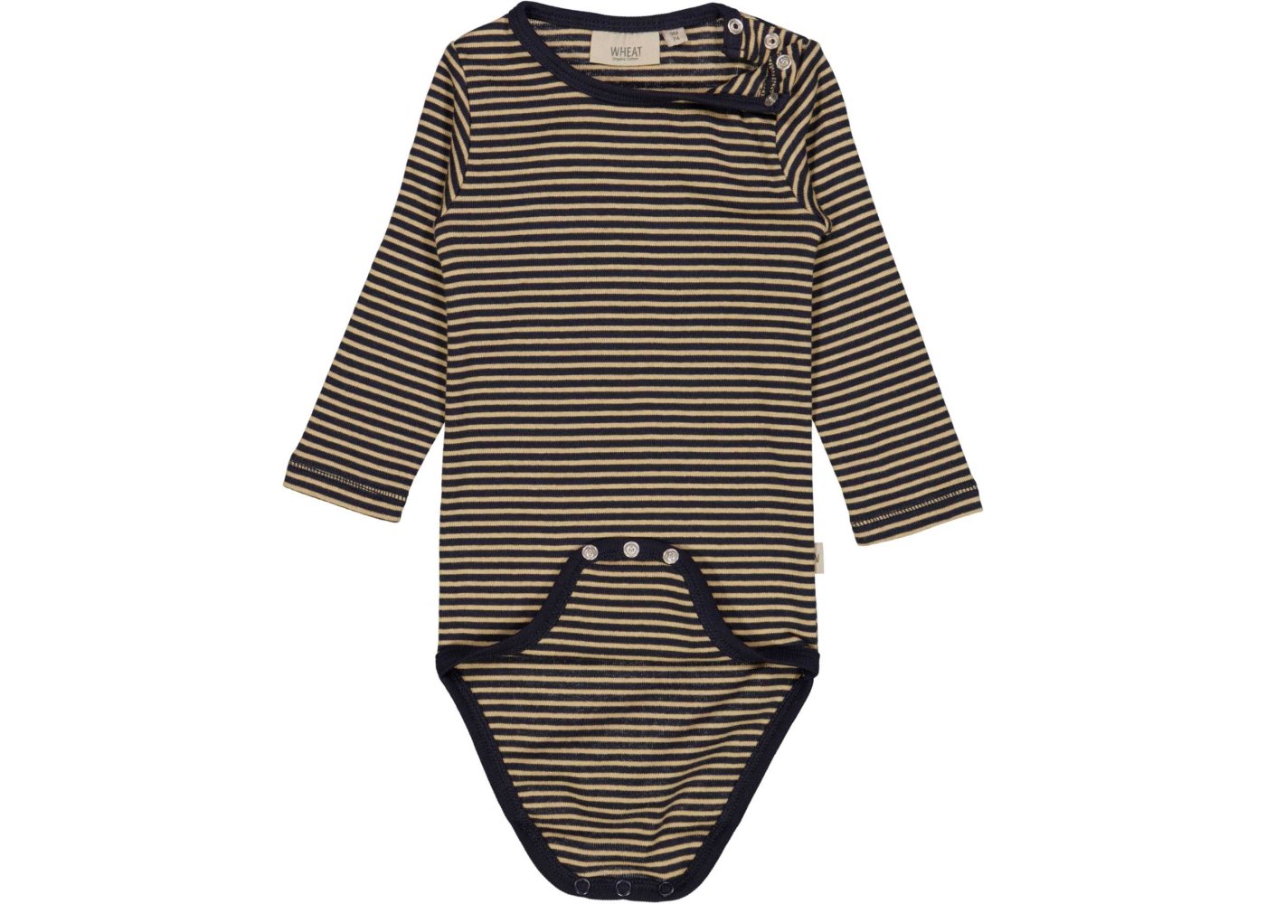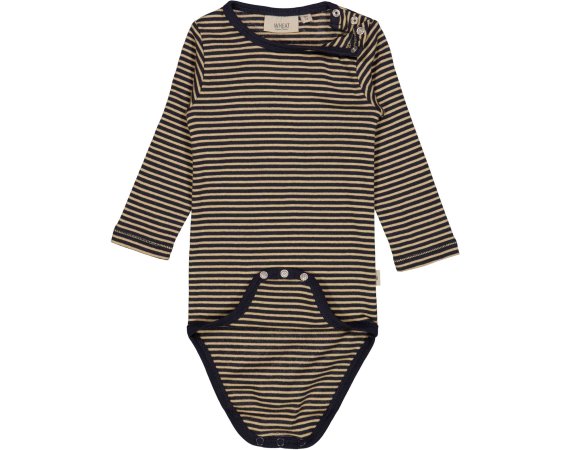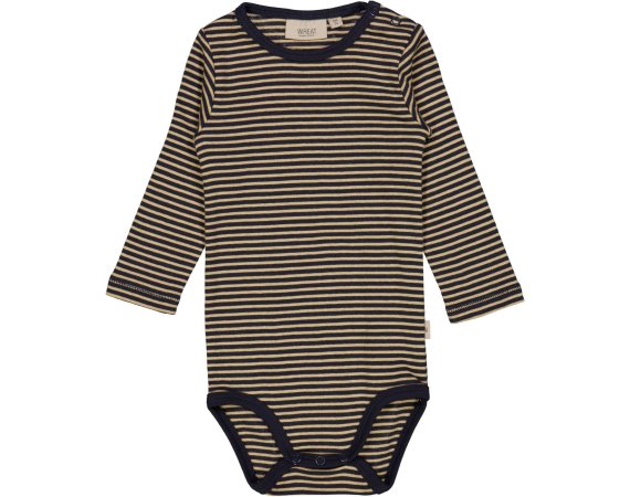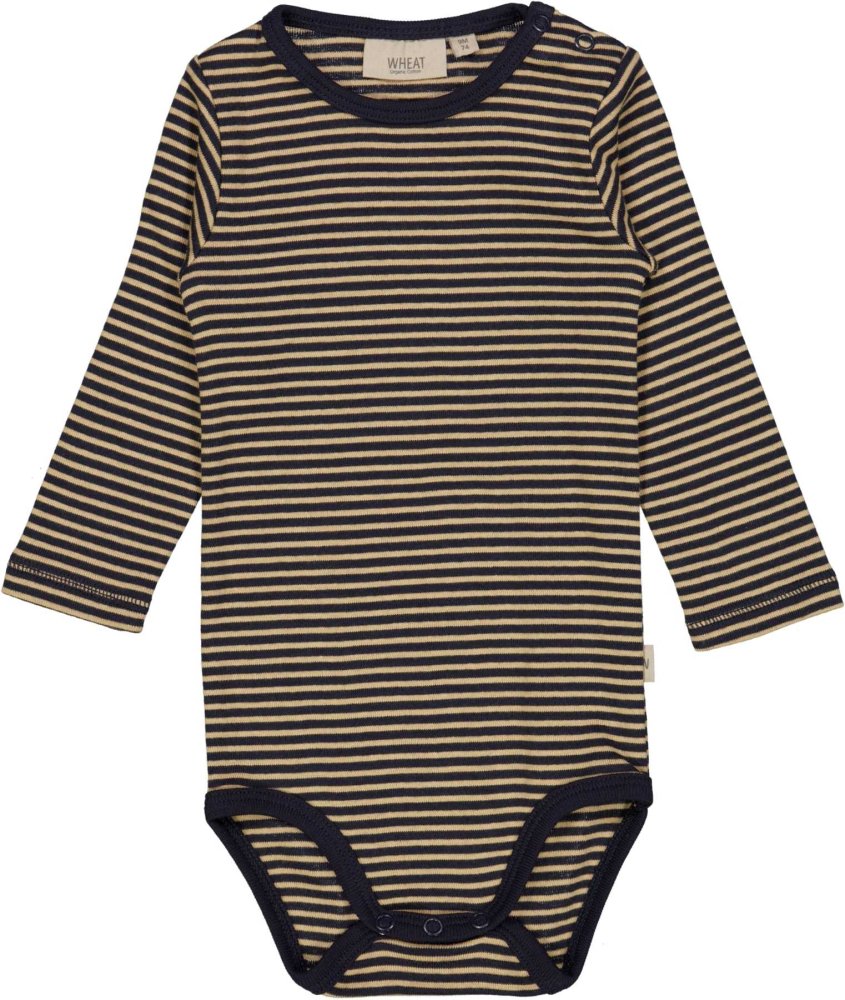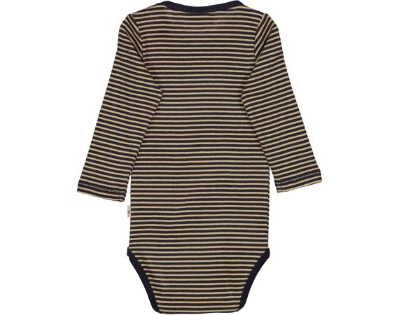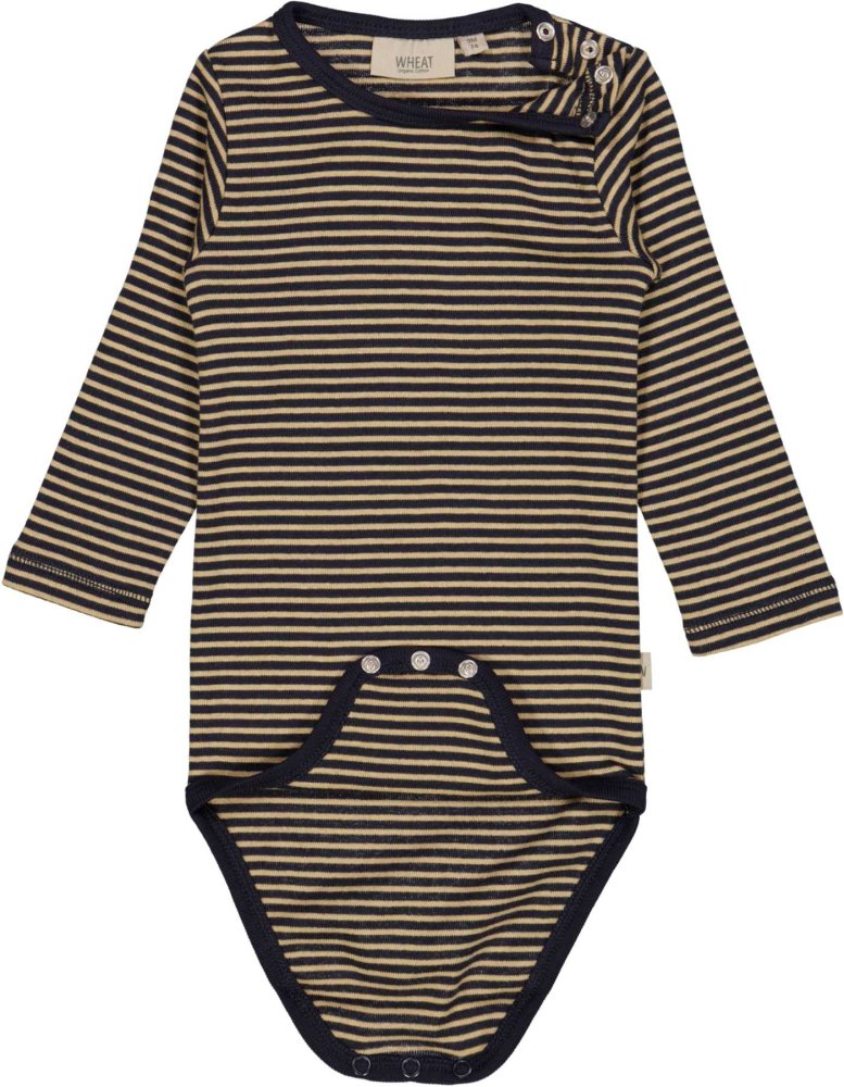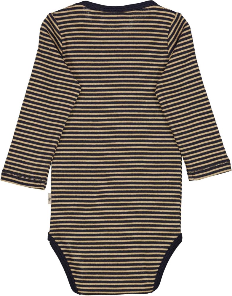 Bodyen har rund hals med ensfarvede ribkanter i halsudskæring og ved ben åbninger.