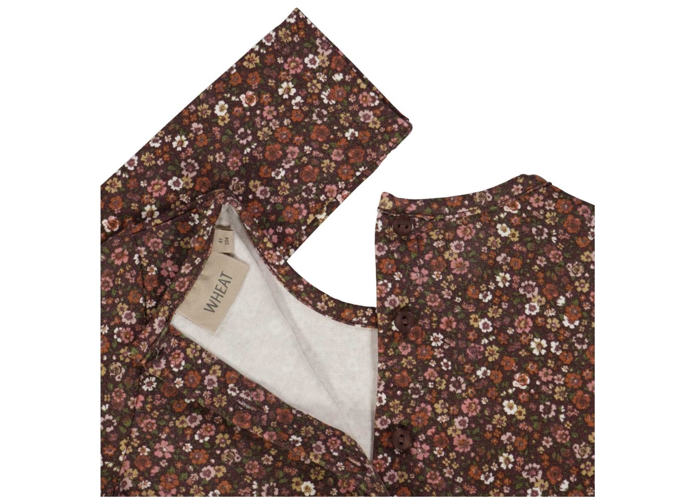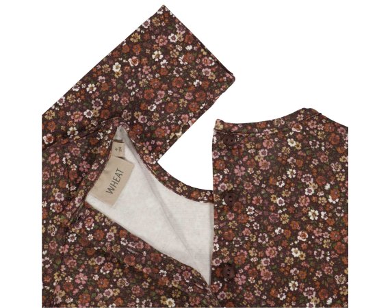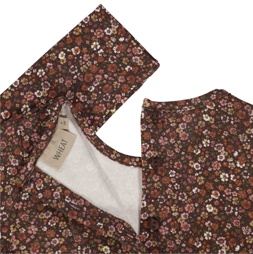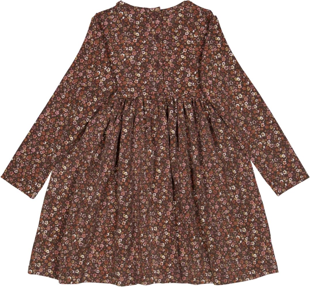 Skøn langærmet kjole med flot unikt håndtegnede blomster i skønne efterårsfarver fra Wheat.