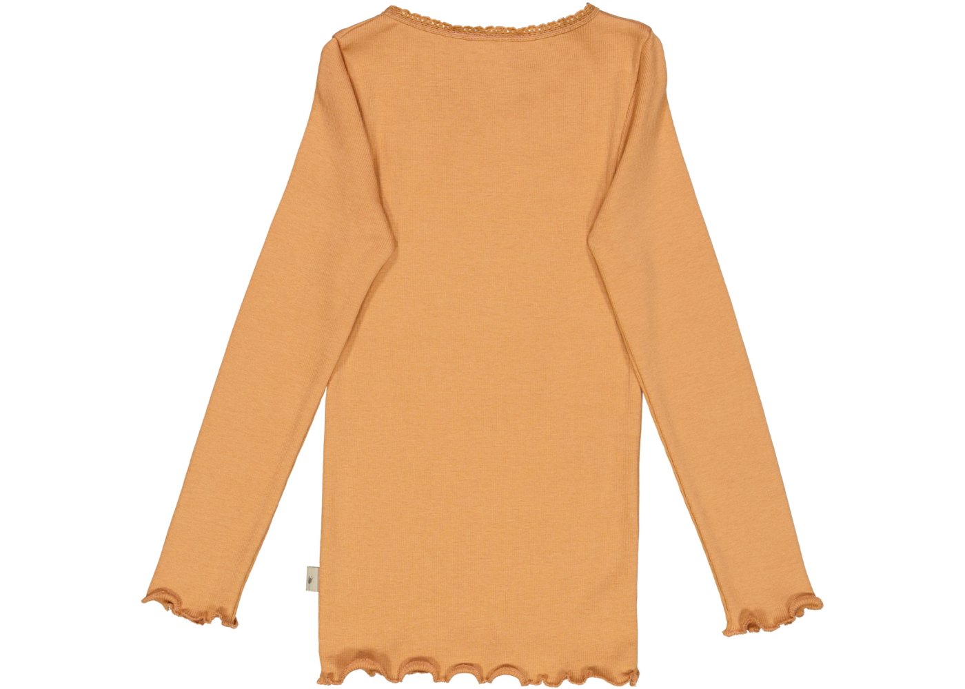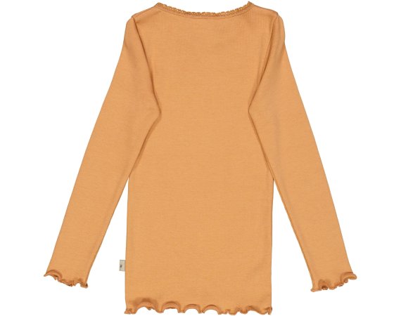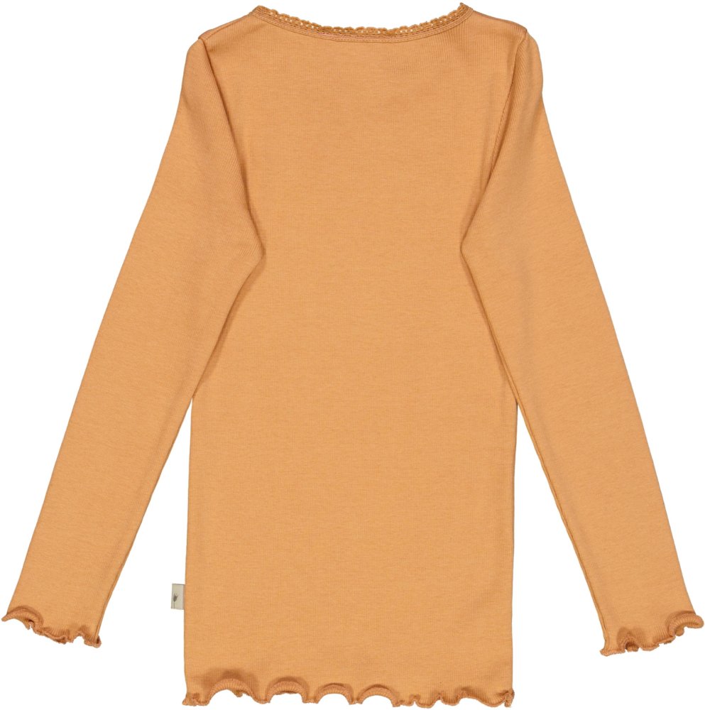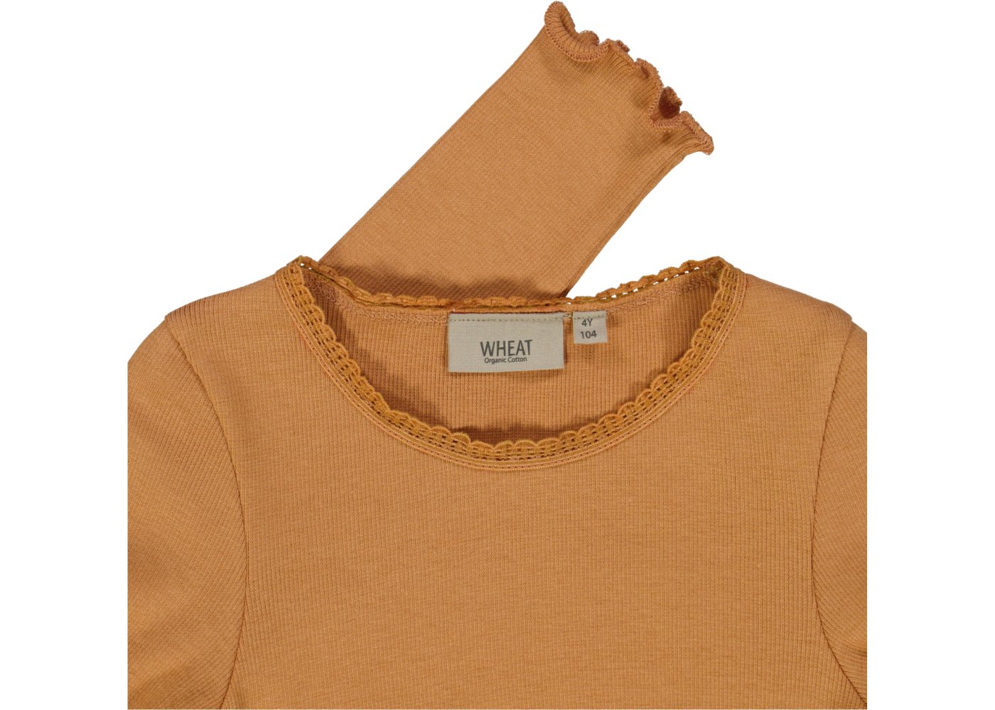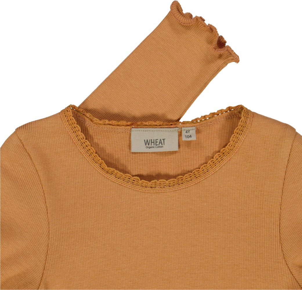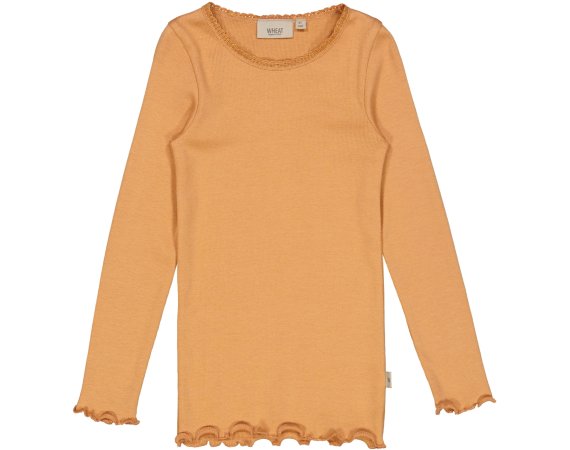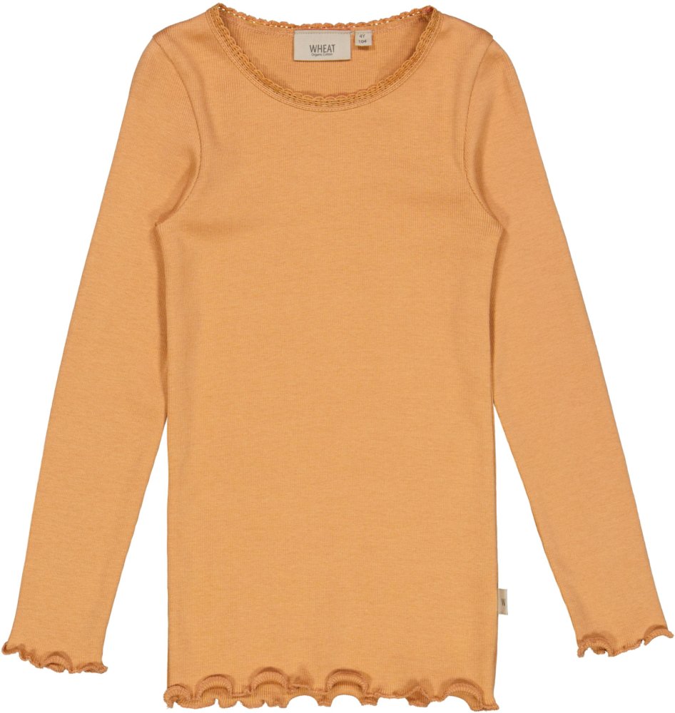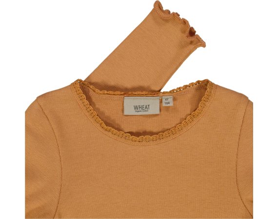 Fin ensfarvet rib t-shirt med lange ærmer fra Wheat.