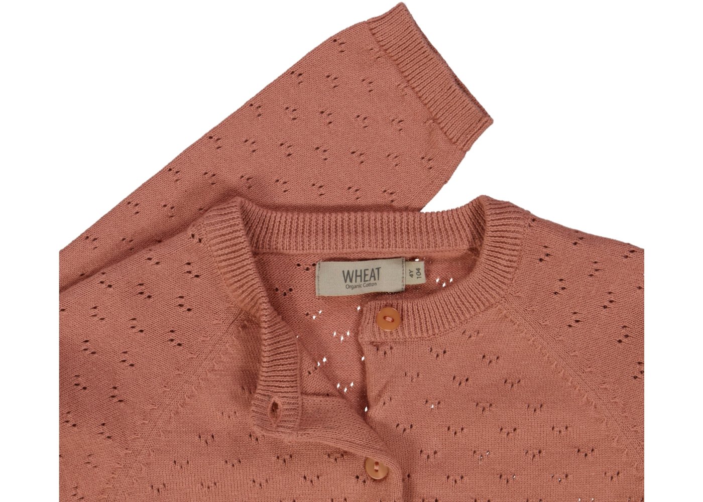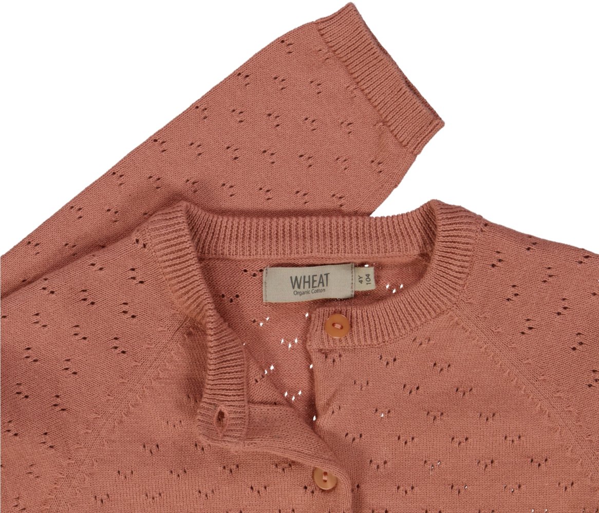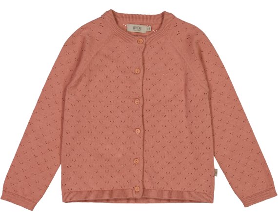 Smart langærmet cardigan i klassisk pointelle-strikmønster fra Wheat.