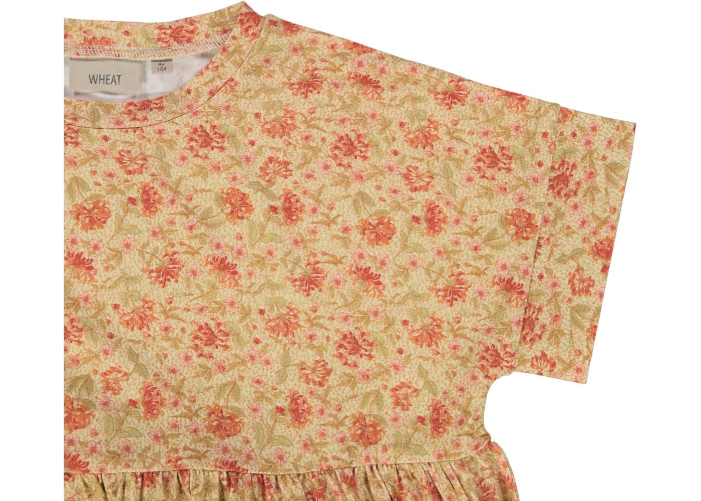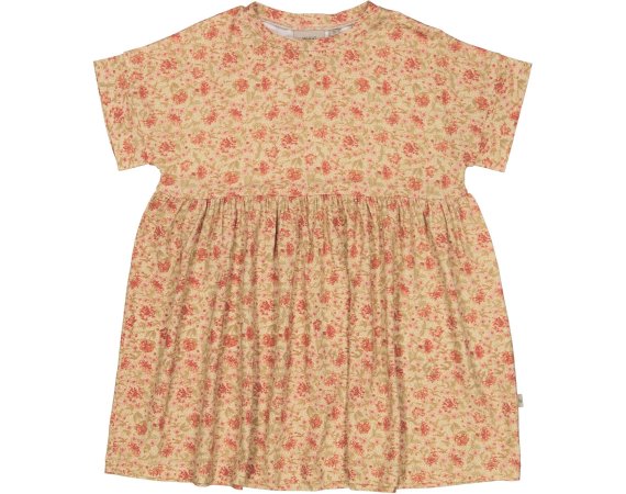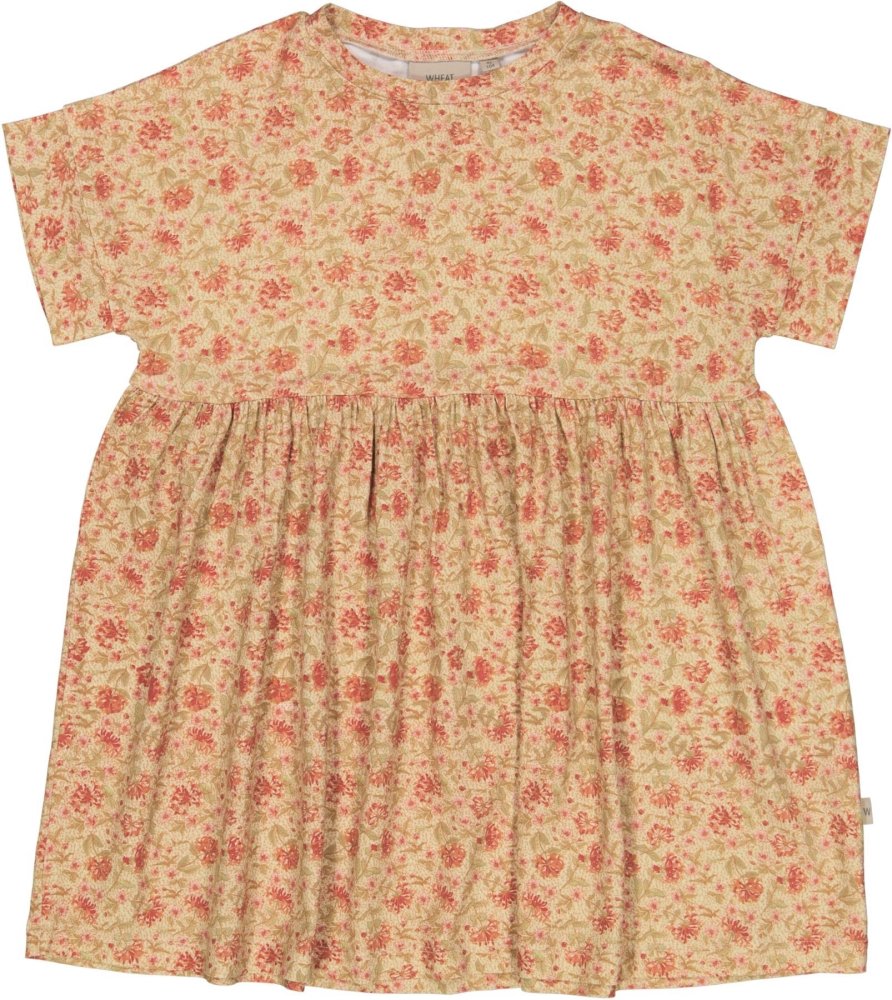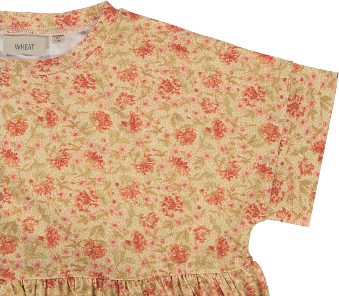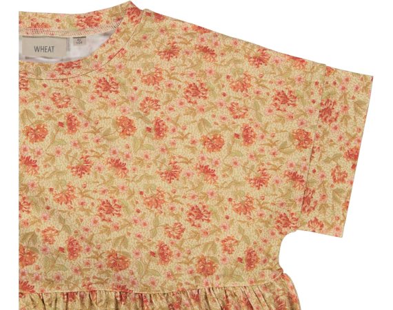 Sød honningfarvet kjole med håndtegnet blomsterprint fra Wheat.