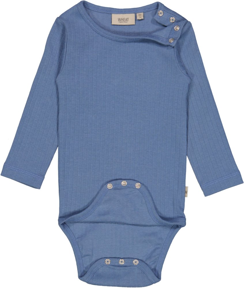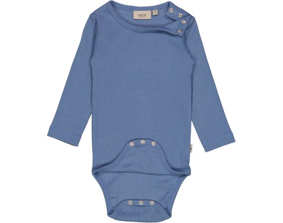 Smart langærmet blå ribbody fra Wheat.