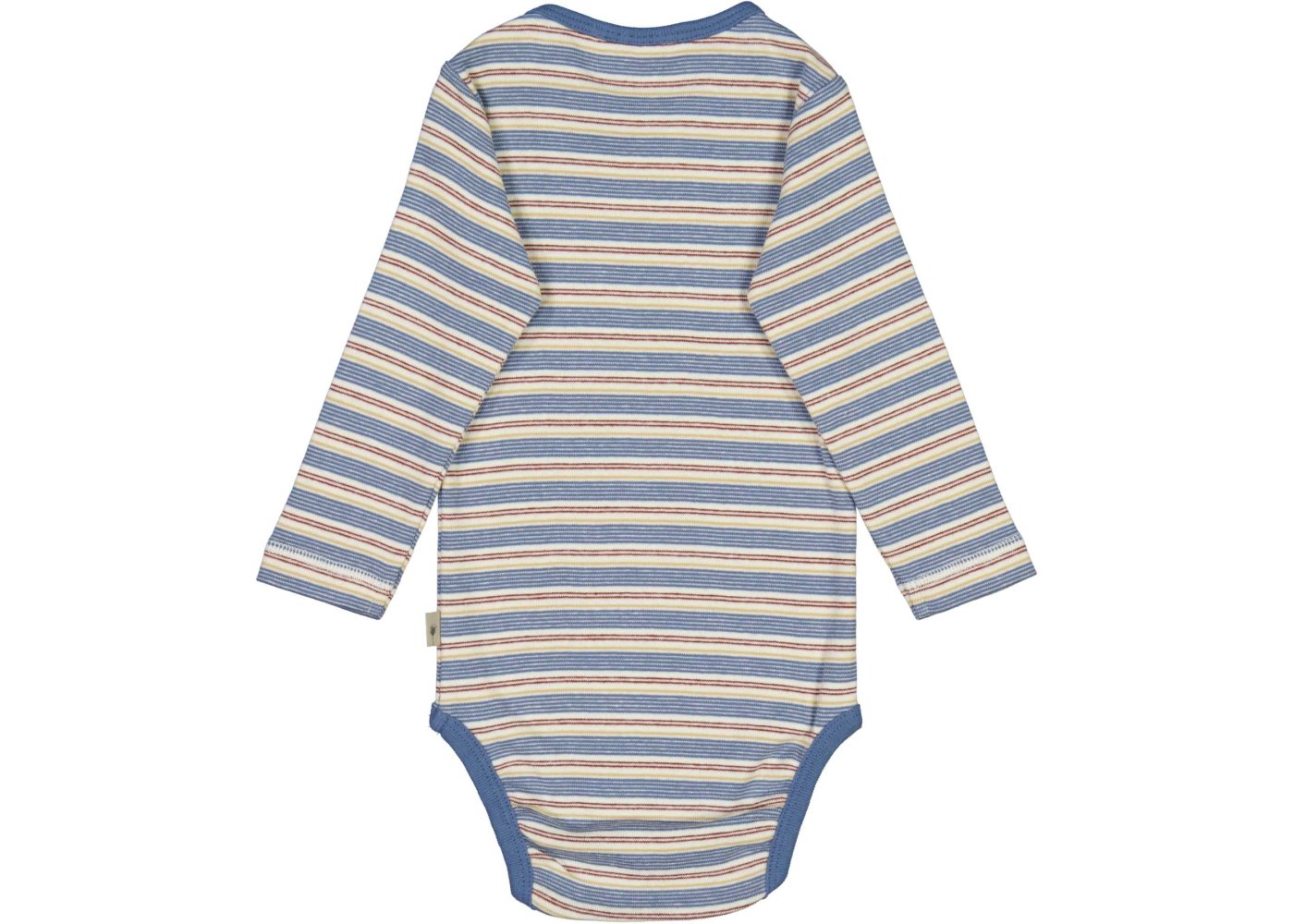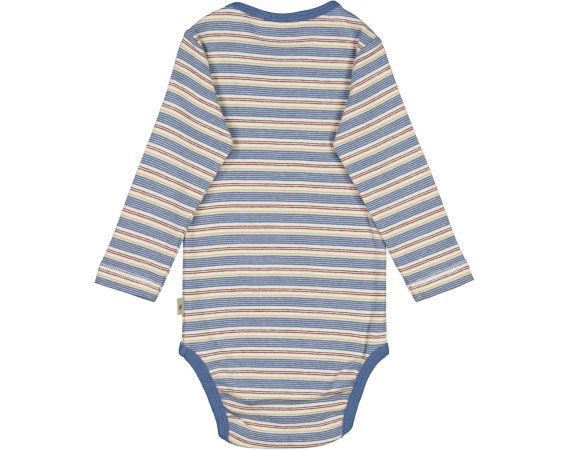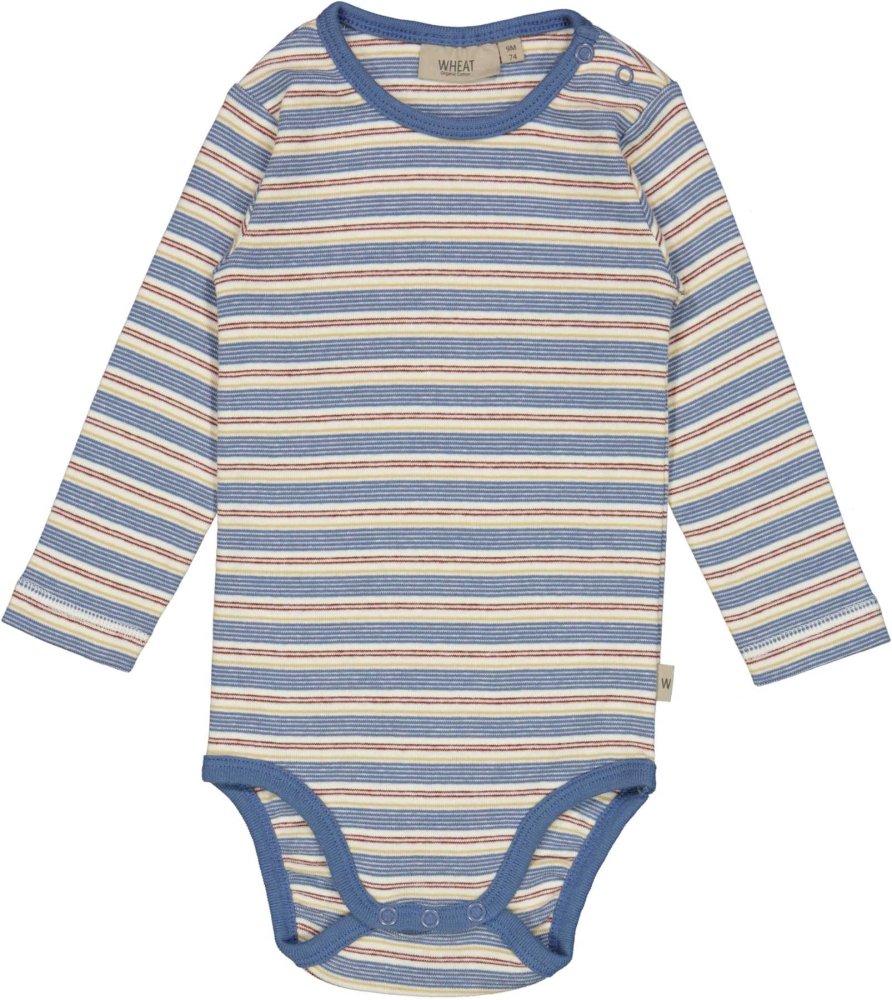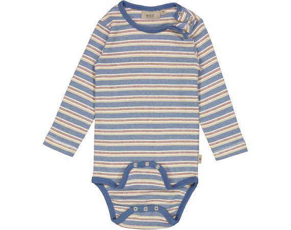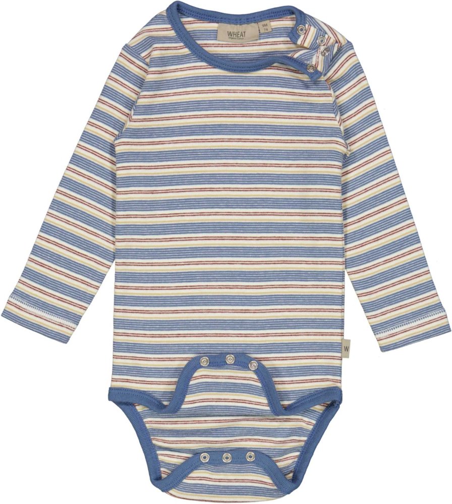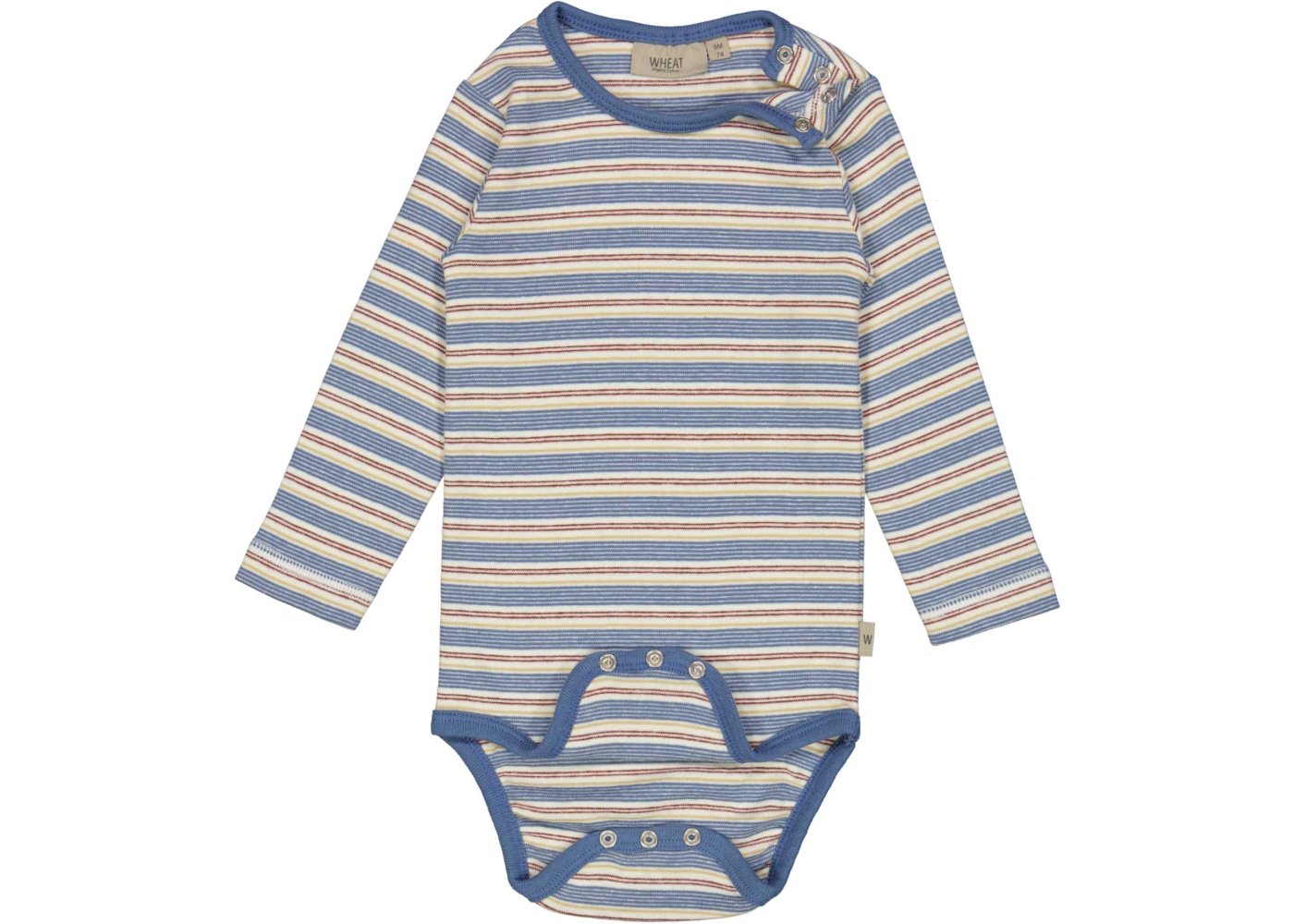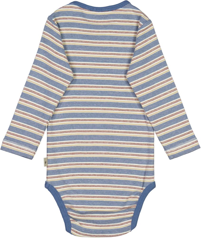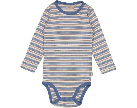 Smart langærmet body med striber og blåt kantebånd fra Wheat.